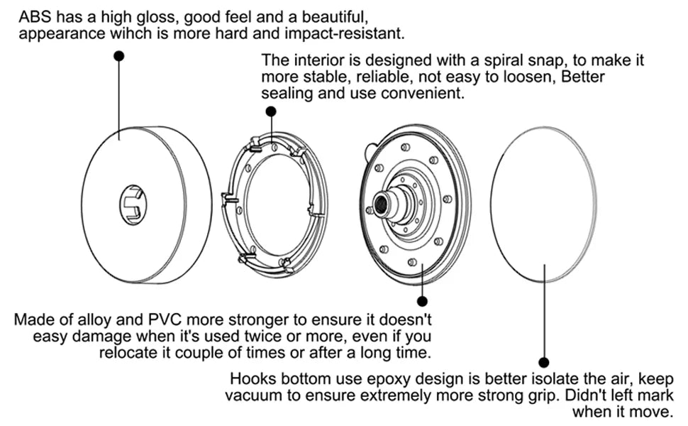 *No Drilling and Marks-Suction cup works by vacuum with strong adsorption capacity and flexibility.Towel hooks don't need to drill unsightly holes and glue, won't leave any marks or sticky residue! It use Epoxy design, ensure an extremely more strong grip.