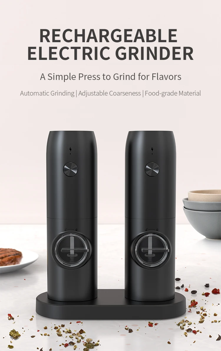 1/2PCS Electric Salt And Pepper Grinder with LED Light Gravity Sensing Adjustable Spice Mills Cordless Automatic Kitchen Gadget