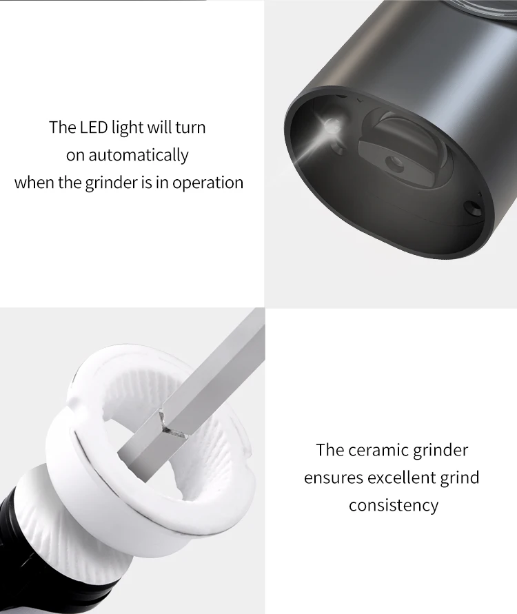 7. With adjustable grinder, you can easily adjust the grinder knob to choose the coarseness of your spice, salt or peppercorn