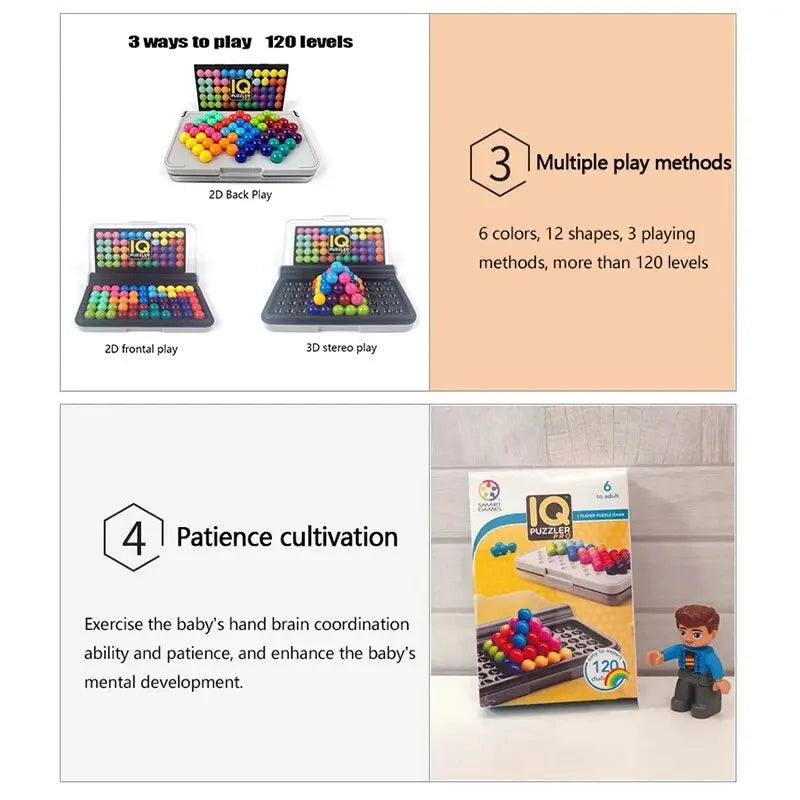 120 Challenges IQ 3D Puzzle Board Game Classic Pyramid Plate Pearl Logical Mind For Children Pyramid Beads Montessori Toys Gifts