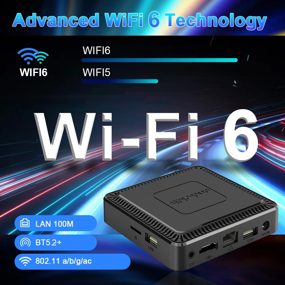 2025 New Q7 Smart TV Box Android14 Allwinner H313 8G+128GB ROM Dual-Band WiFi 6 Bluetooth 5.2 Google Voice Remote Media Player