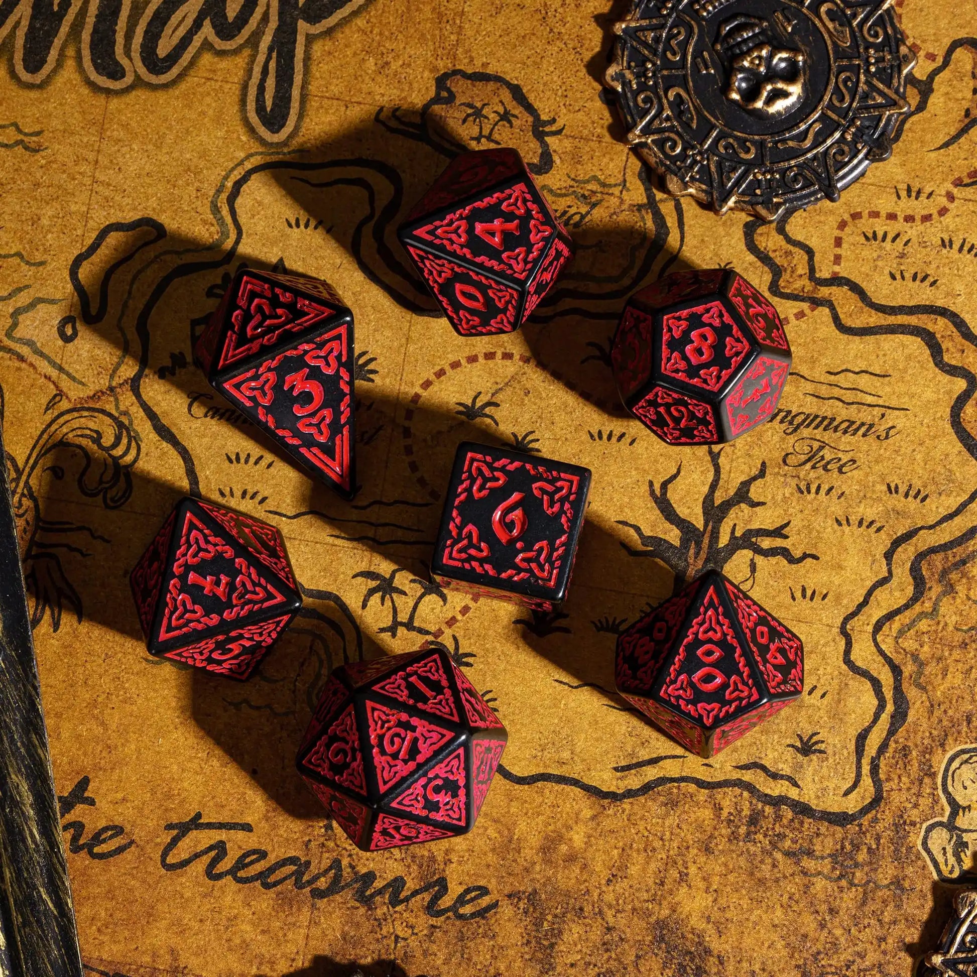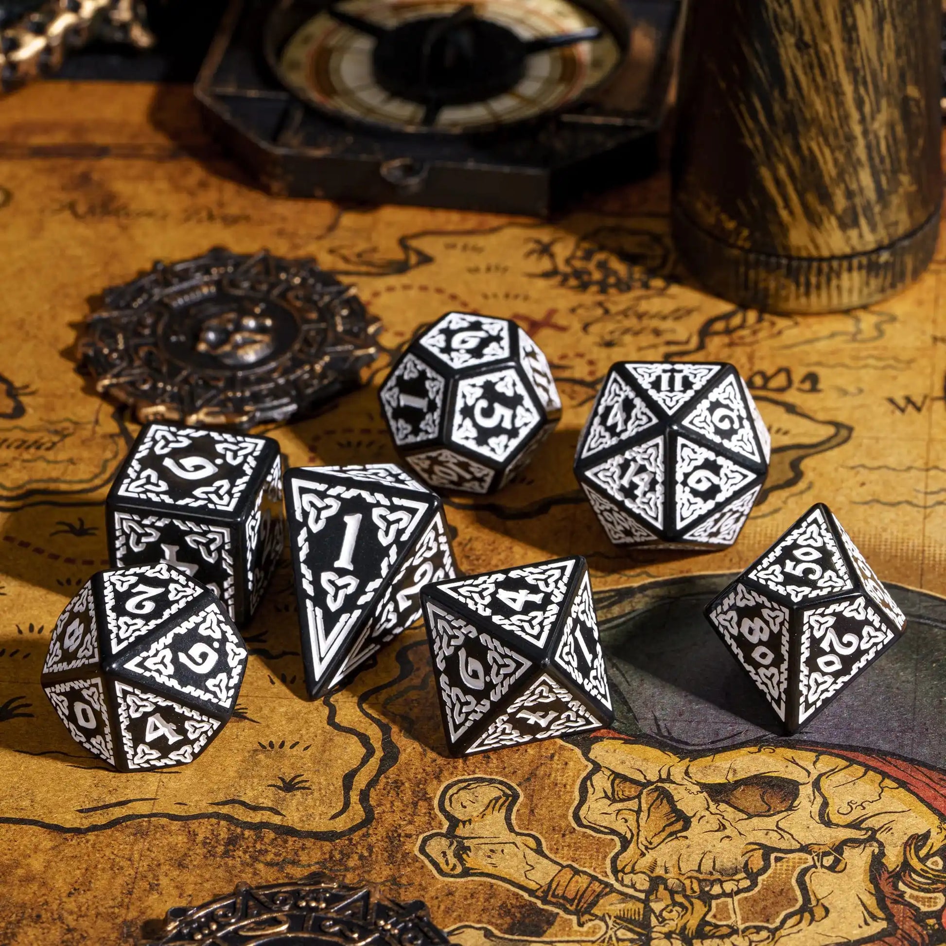 DND Celtic Knot Dice with Unique D4 7Pcs/Set New Pattern D4- D20 Polyhedral Dice for Role Playing Board Game D&D Tabletop Games
