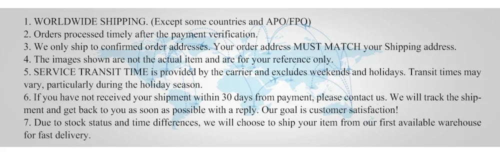 3.If you address is a remote area,we will contact you,you need add USD 40 Extra shipping fee,but if you didn't answer us on time and paid for it,we will choose anther shipping method for you.
