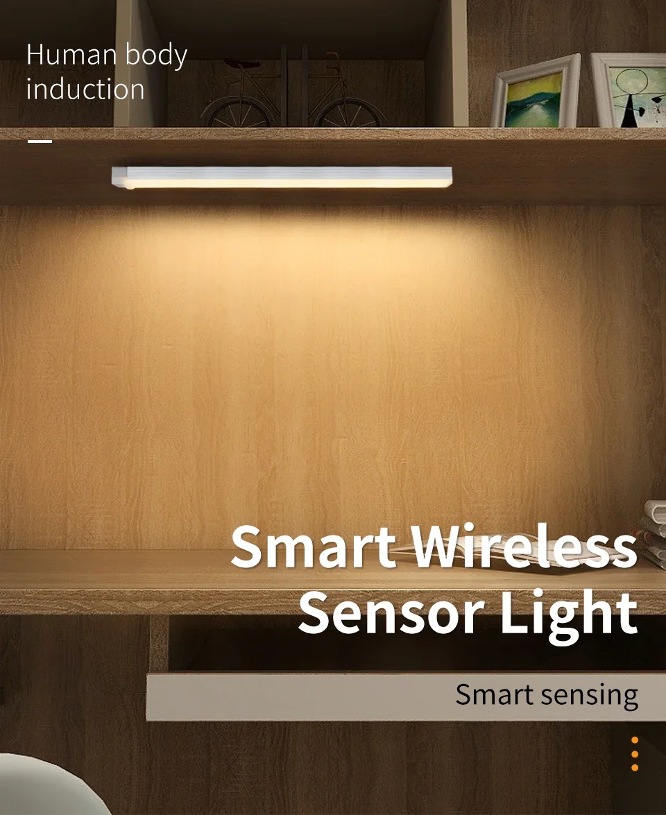 Motion Sensor LED Cabinet Light USB Rechargeable Wireless Night Lamp for Bedroom Kitchen Wardrobe Closet Staircase Lighting