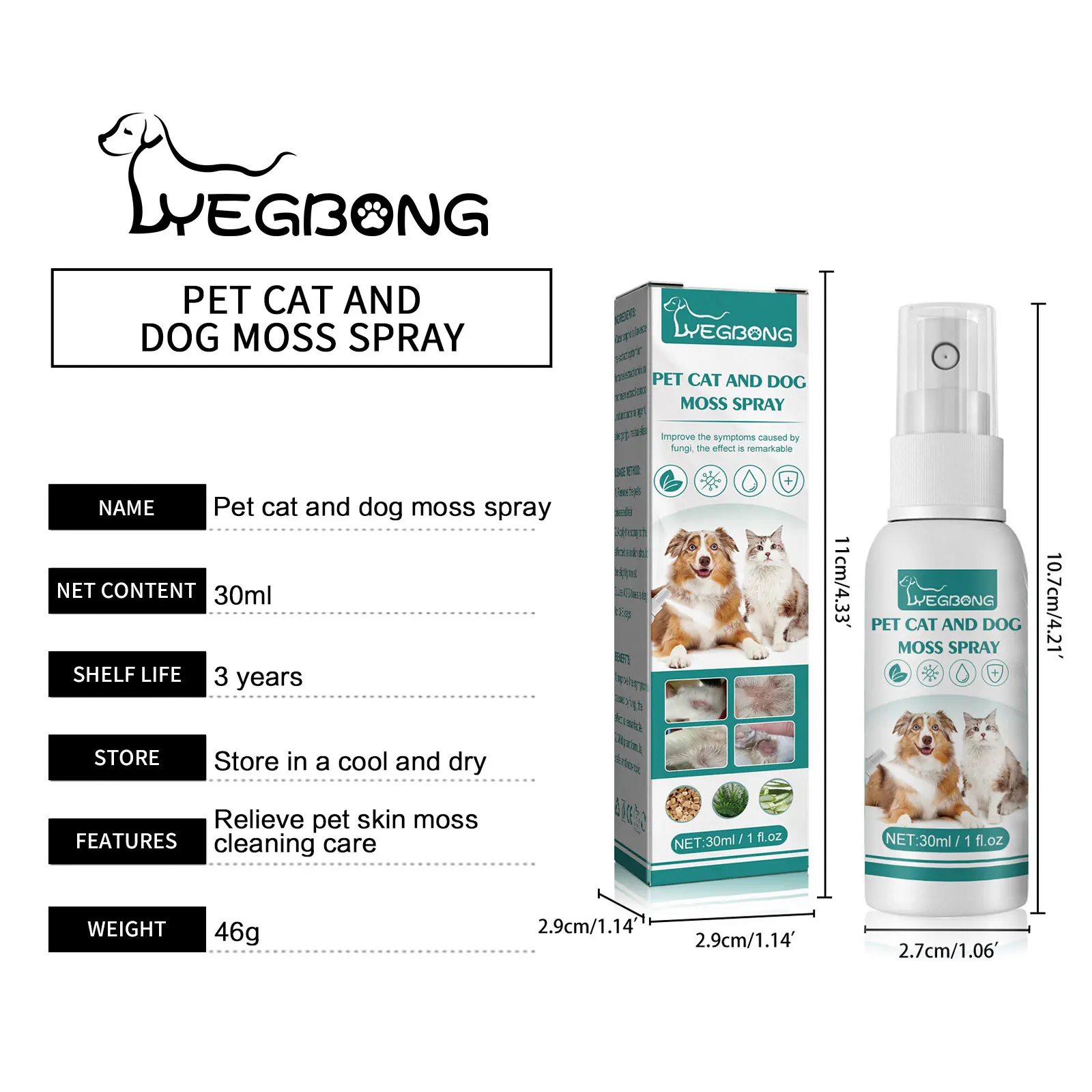 Yegbong Pet Skin Care Spray Dermatitis Allergy Antibacterial Flea Tick Killer Puppy Mite Removal Relieve Itching Cat Ringworm Treatment 30ml