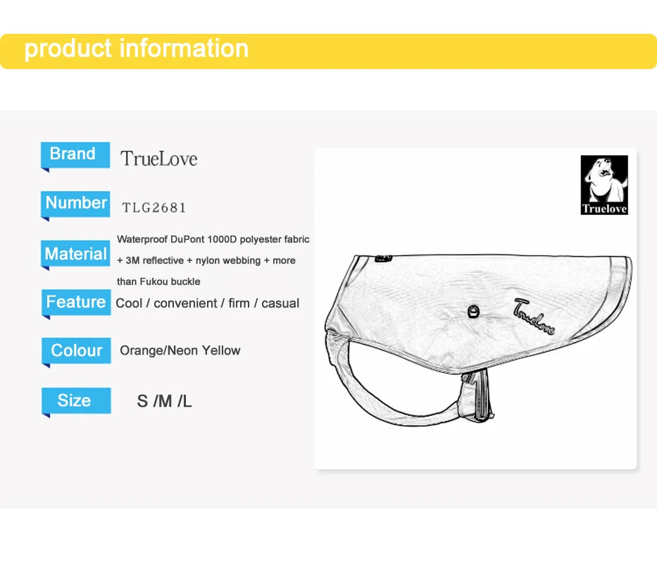 Truelove Dog Jacket Summer Waterproof 1000D Polyester Fabric Reflective Hollowed Hole Network Medium Large Pet Products TLG2681