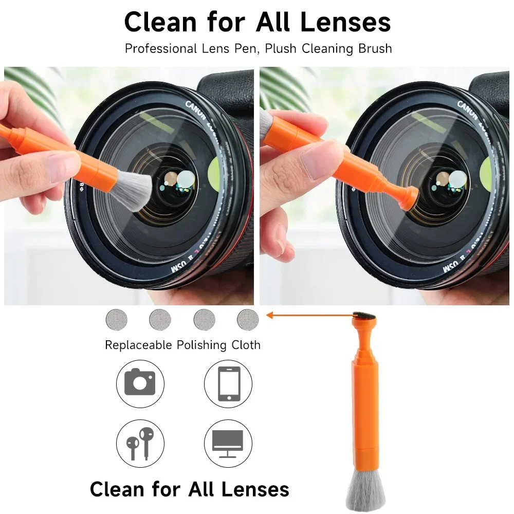2. Powerful Function: The silicone tip can remove stubborn stains in the crevices of earphones, buttons and other items. The high-density brush removes dirt and dust from the headphone sound hole. The flocking sponge removes dust inside the earphone charging case. Flannel wipes are used for cleaning large dusty areas such as keyboards, desks, window rails, and more.