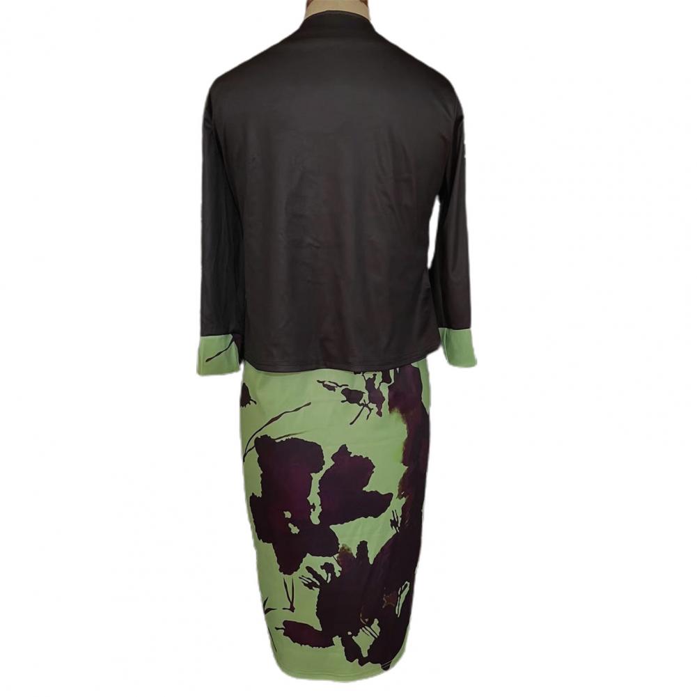 2 Pcs/Set Women Coat Dress Suits Set Floral Print Sheath Midi Dress Open Stitch Dress Suit Jacket Women Outfit Set