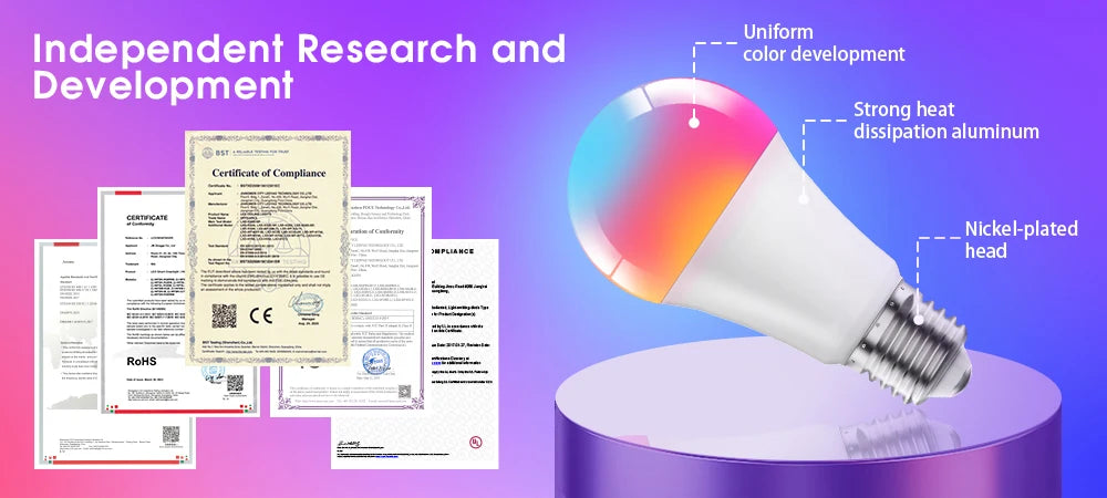1. High quality WIFI + Bluetooth smart light bulb, can wifi connection, can Bluetooth connection, also can 2.4G remote control alone