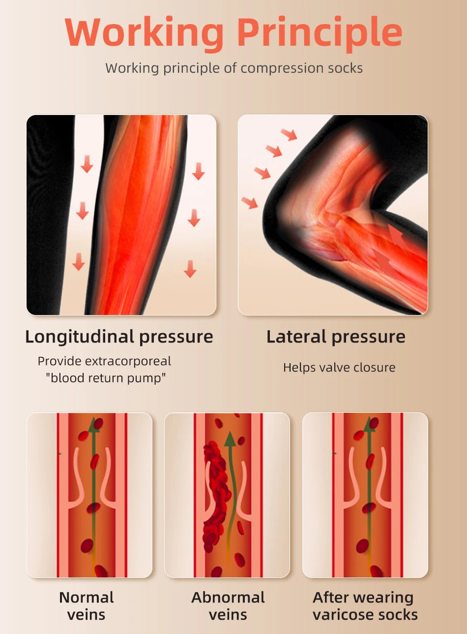 First level 15-21 mmHg): It is suitable for health prevention in people. For example, teachers, traffic police, nurses, doctors, beauticians, shopping guides, etc., and these socks are also suitable for early symptoms, such as venous vessels with slight Lower limb, standing times too long that feeling Soreness