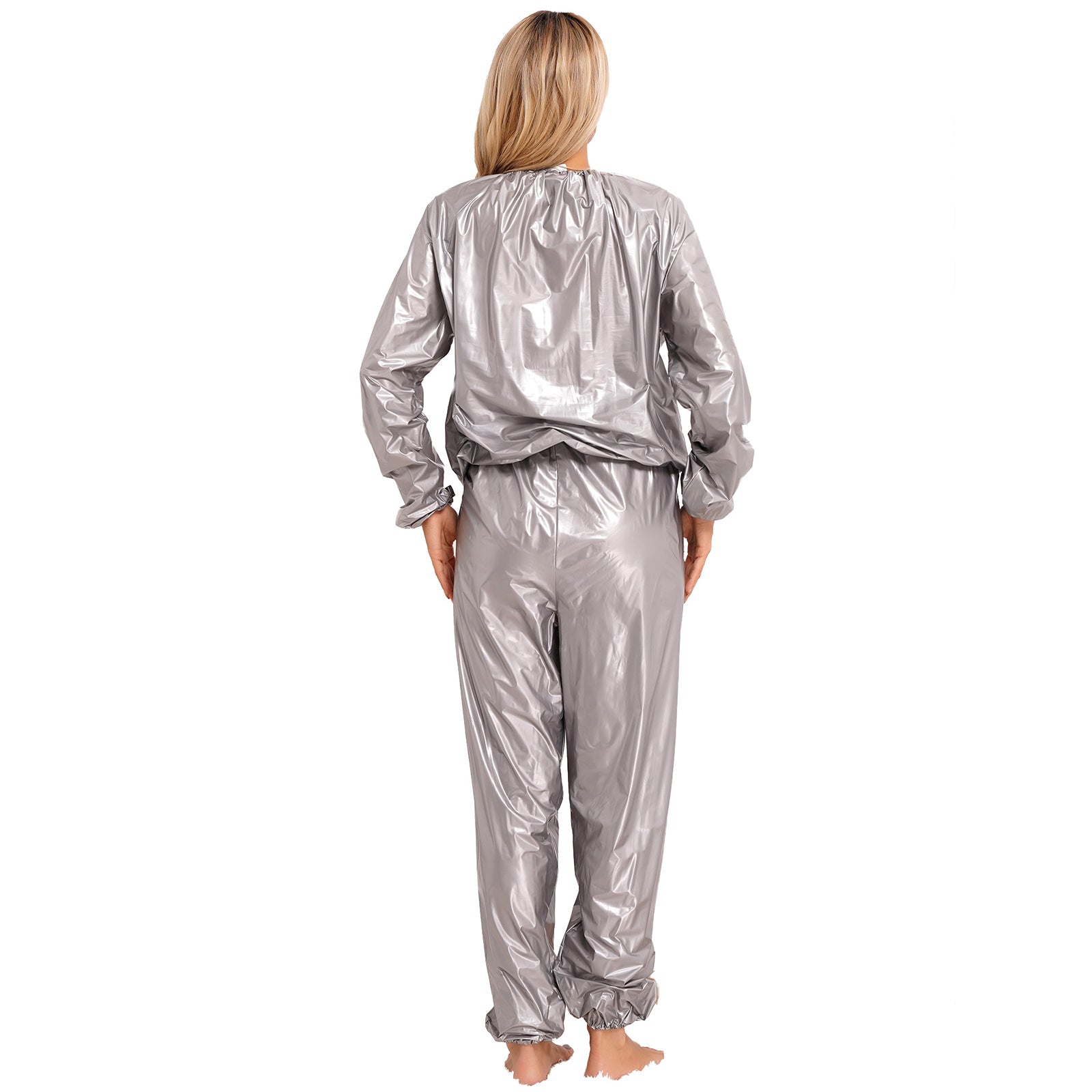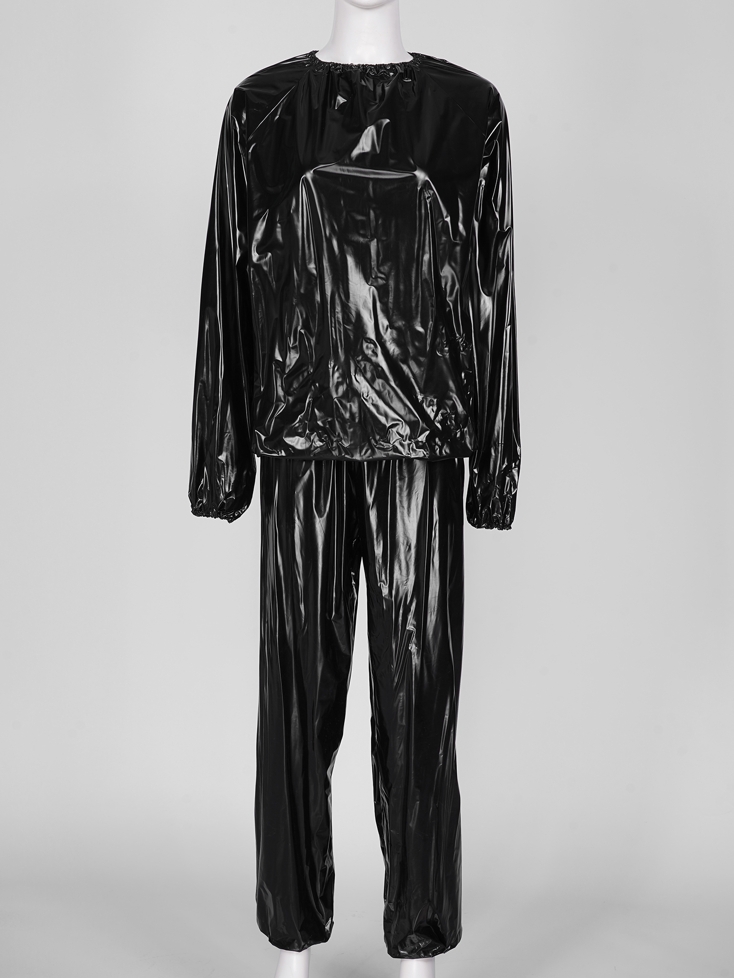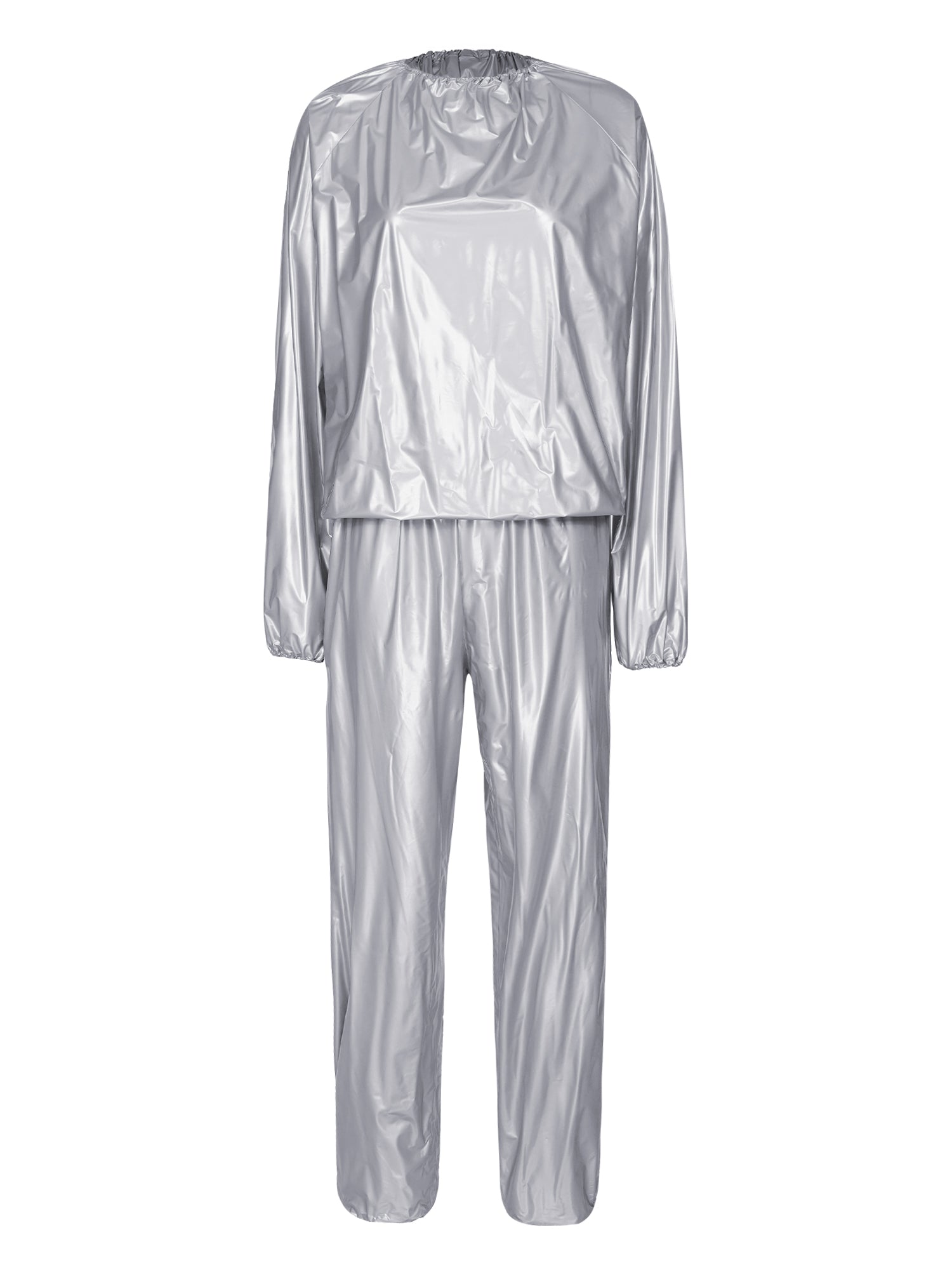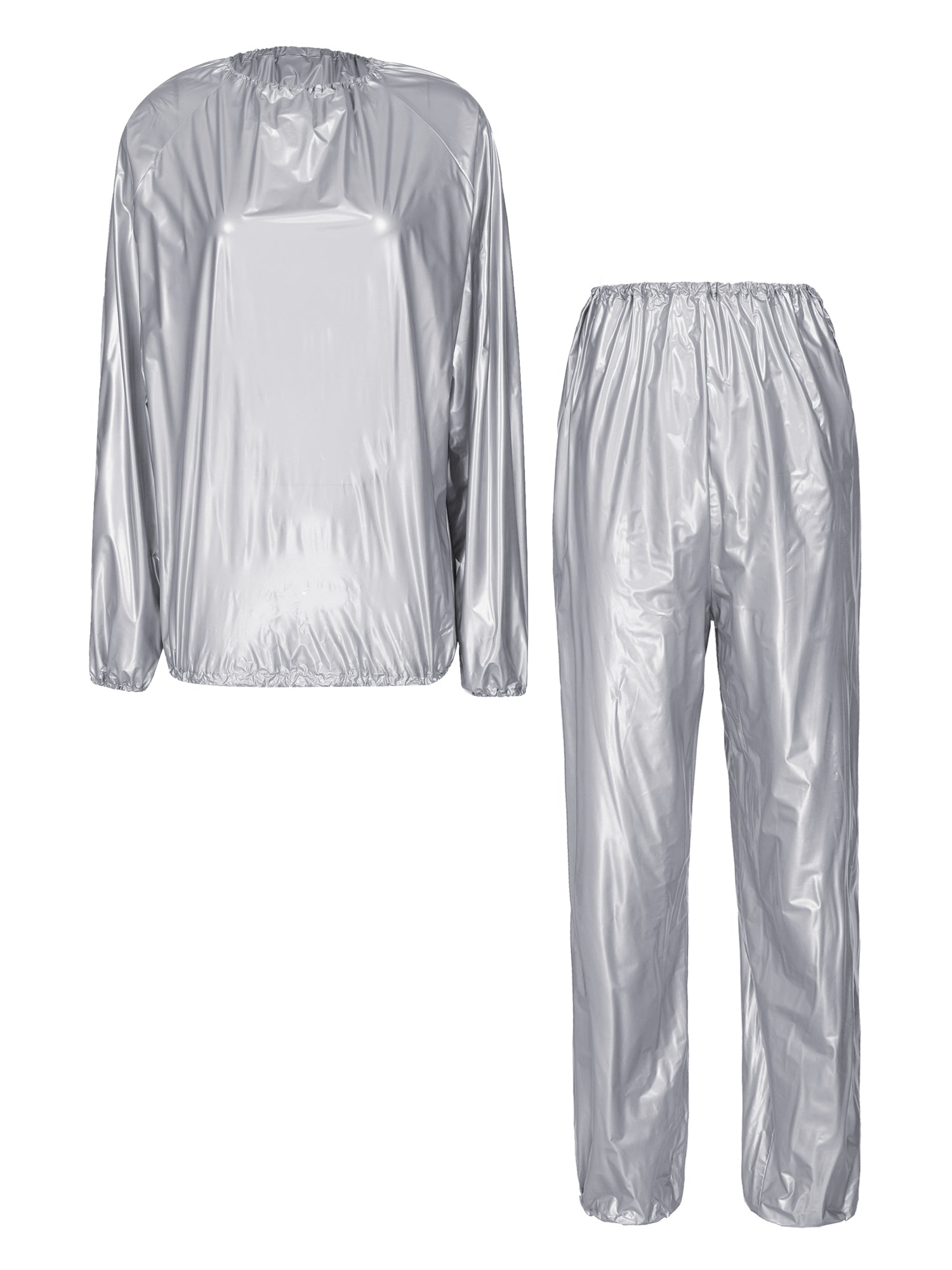 2Pcs Women Sauna Suit PVC Long Sleeve Elastic Cuff Top Pants Set Fitness Gym Workout Outfit Sweat Suits for Adults Clothes Sets
