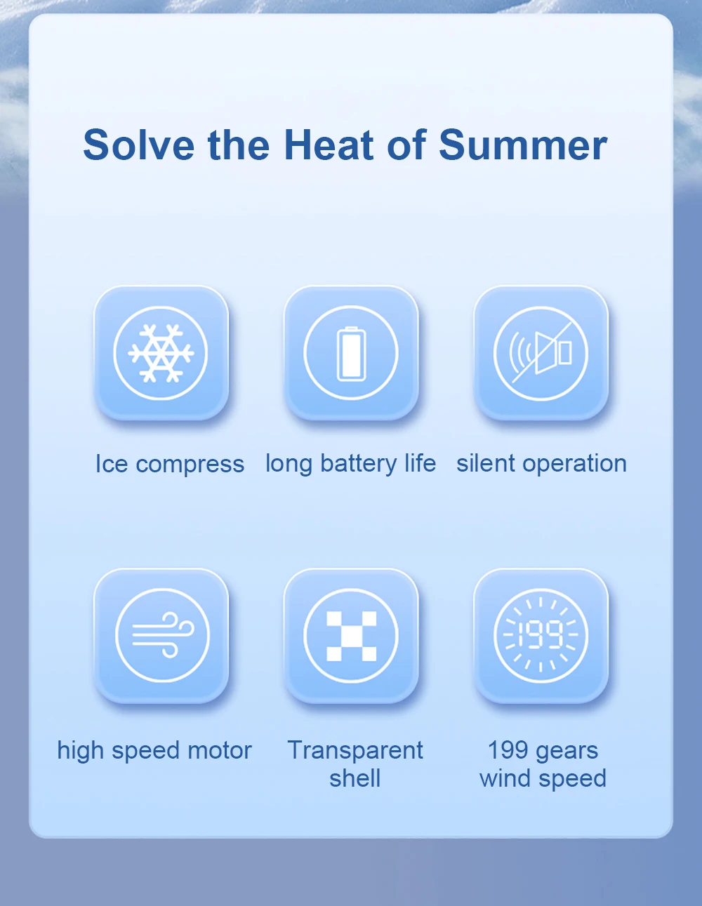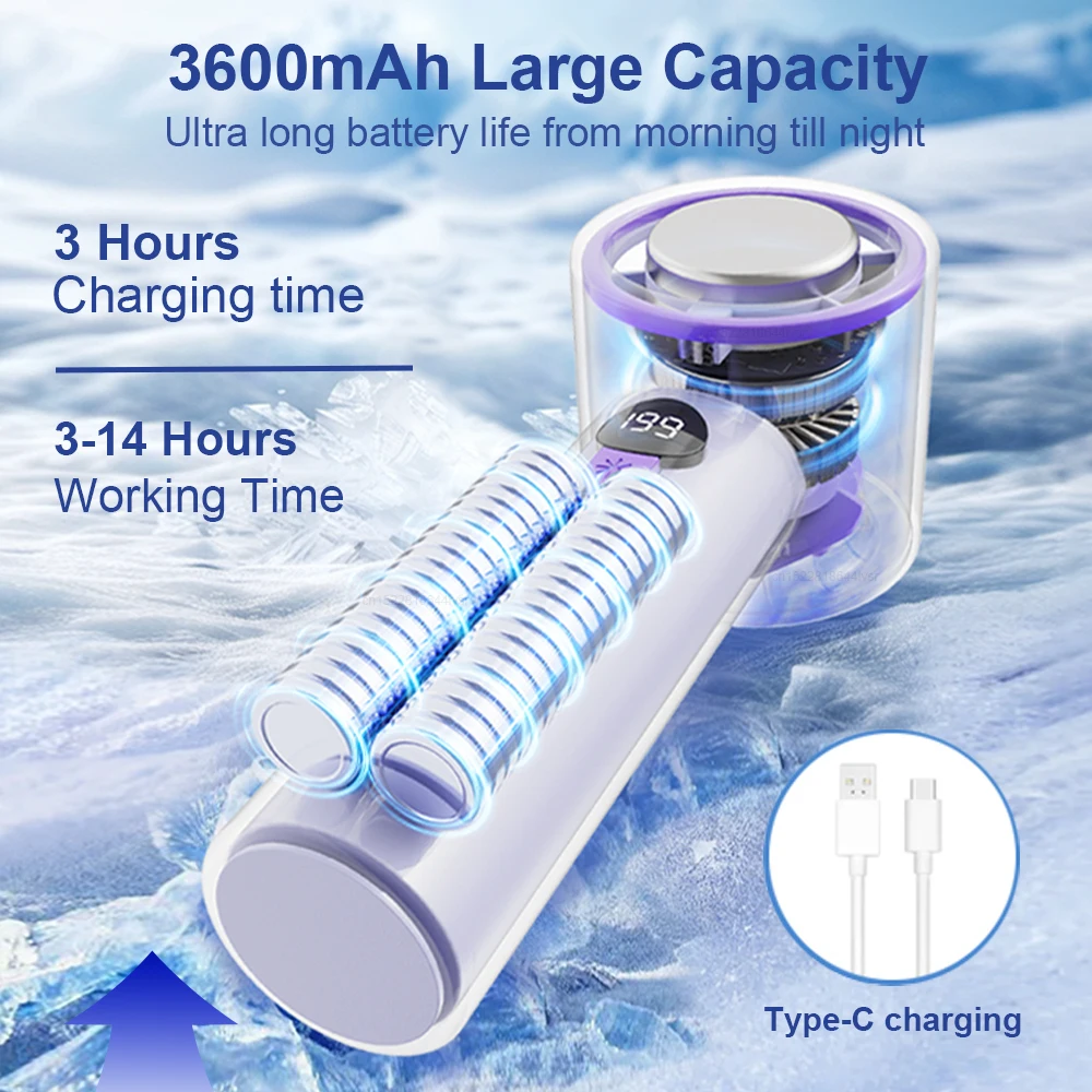 Ice Cold Cooler: The fan is built-in semiconductor cooling Pad, which not only reduces the temperature of the air blown through, but also can rub the pad against your forehead, neck, waist, or any area with arterial flow to lower your blood temperature. Enjoy the cool breeze flowing throughout your body.