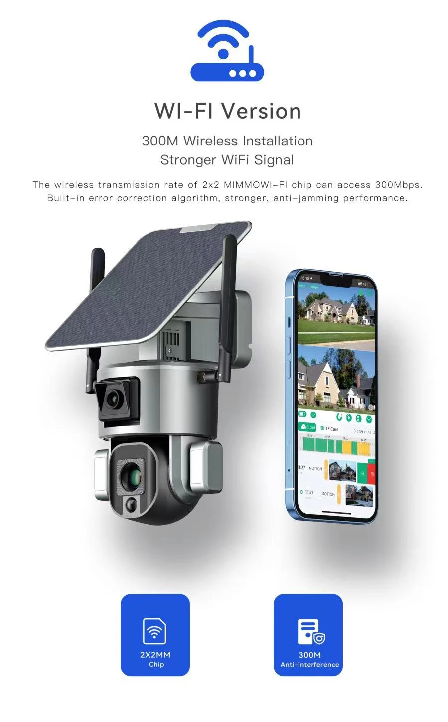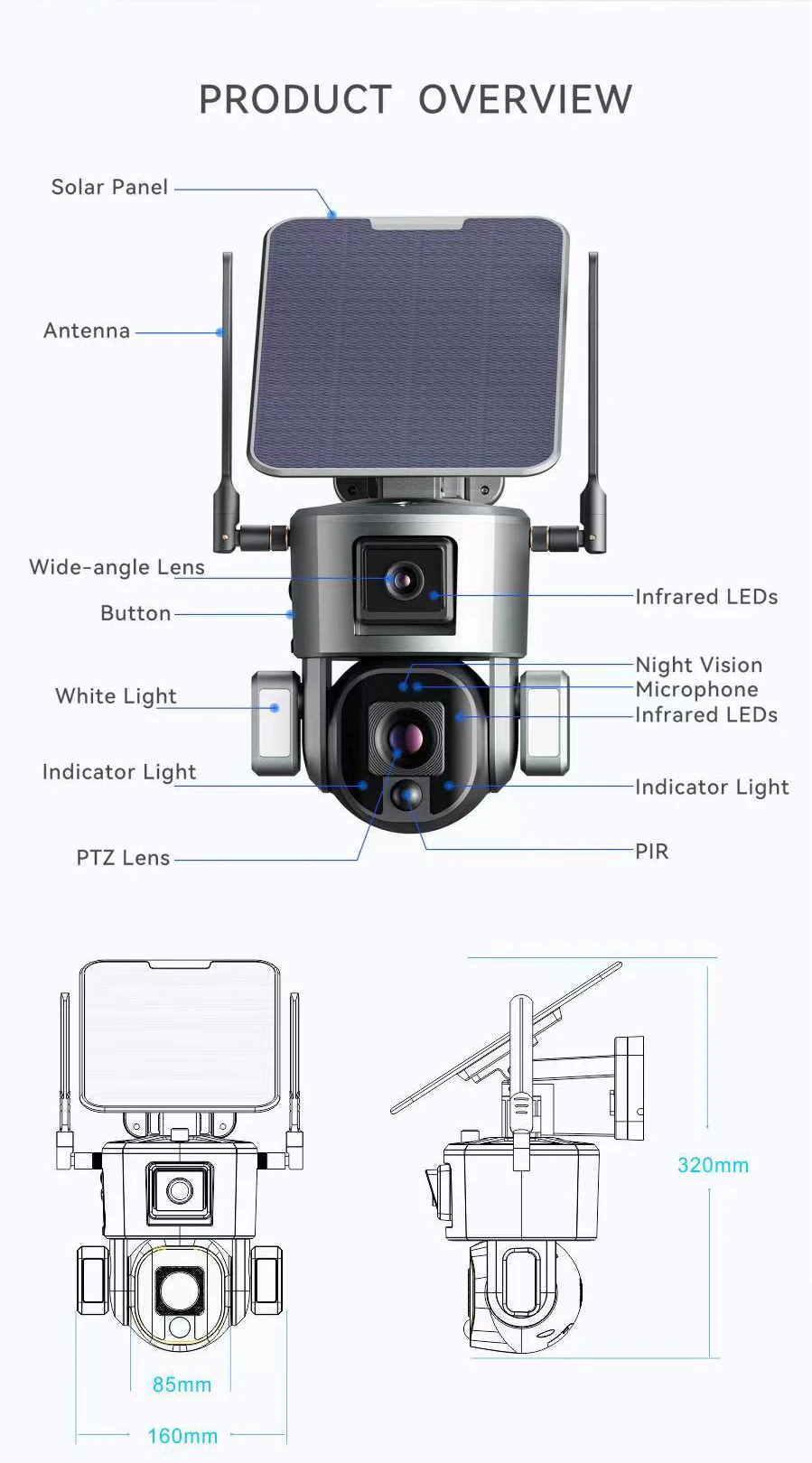 8MP HD Wireless Solar Wifi PTZ Camera With Dual Lens