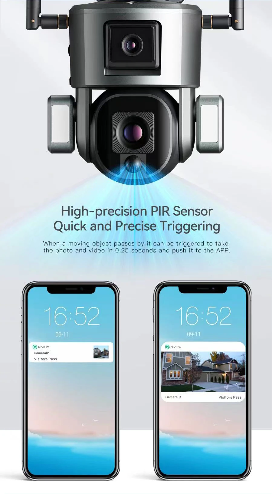 protection, can be installed in any place (requires Wifi network), such as garden, doorstep, garage, etc.