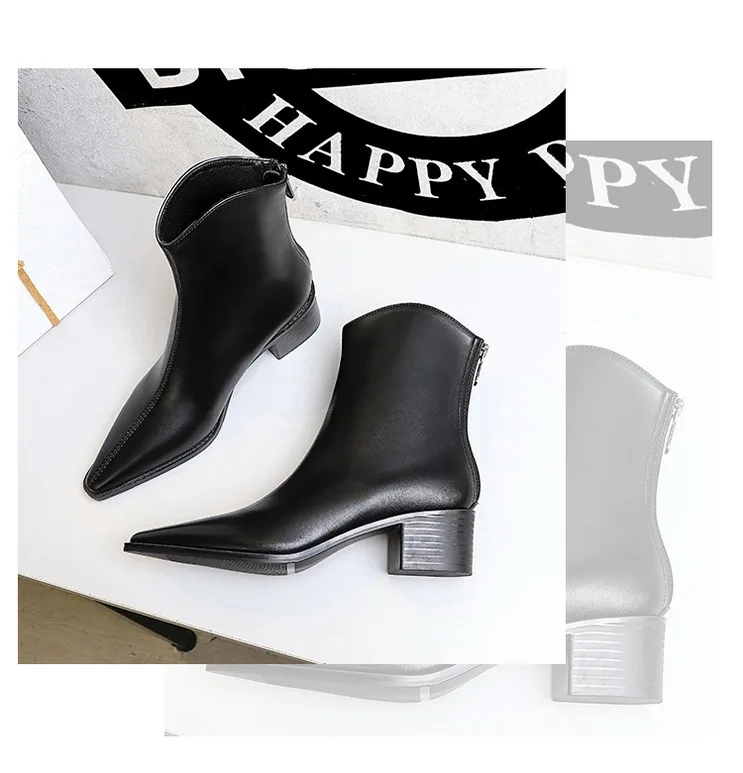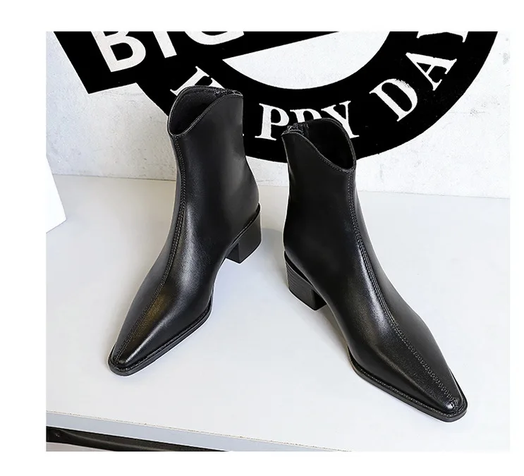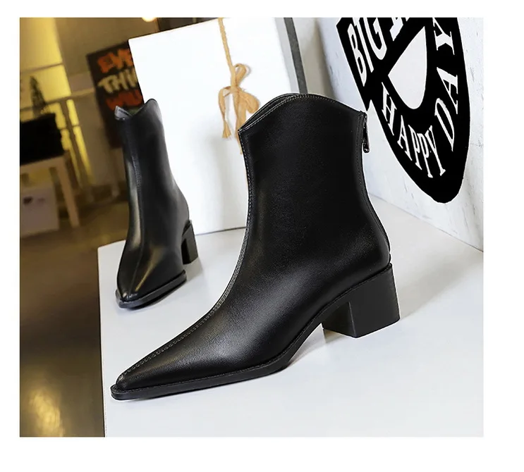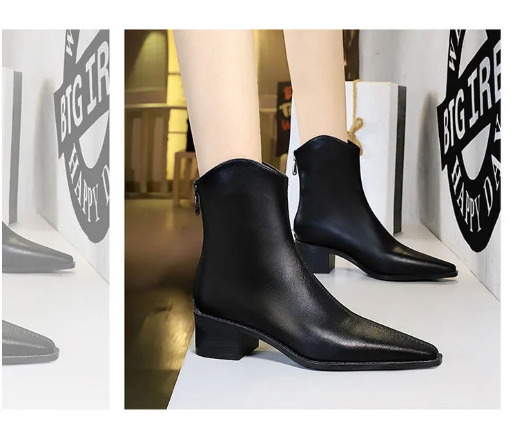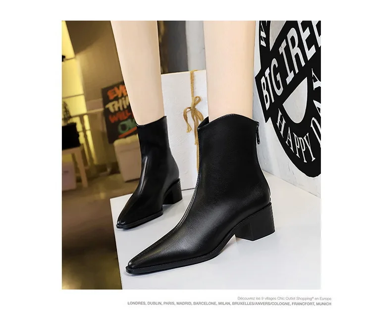 BIGTREE Street Style Designer Vintage Pointed Toe Zipper Women Ankle Boots Autumn Winter Fashion Square Heel Shoes Botas Mujer