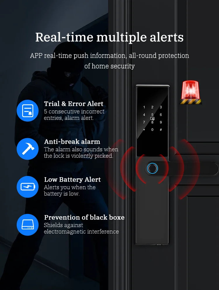 Ways To Unlock: App,REMOTE CONTROL,Bluetooth,Mechanical Keys,Card,Password,FINGERPRINT