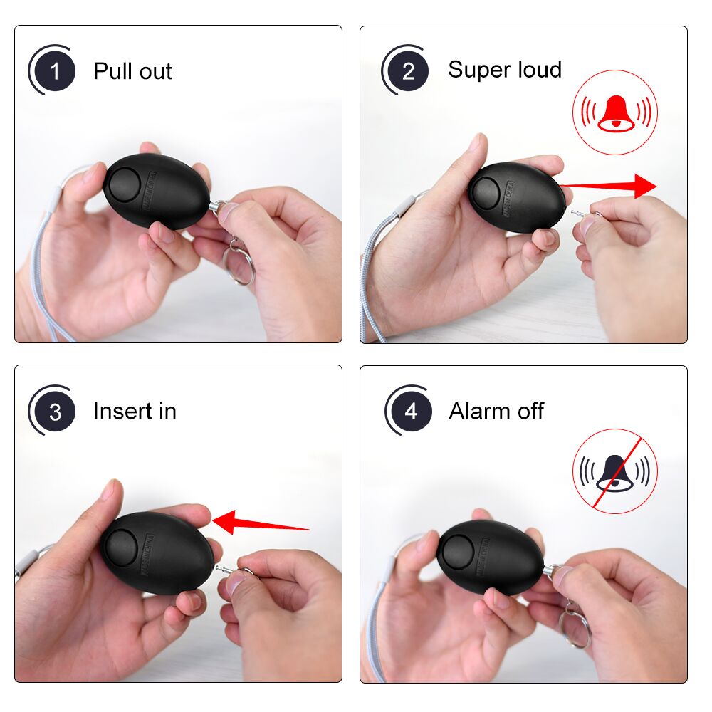 When you feel you are in danger, just pull the metal pin and it will emit a 120 db sound that will deter your attacker