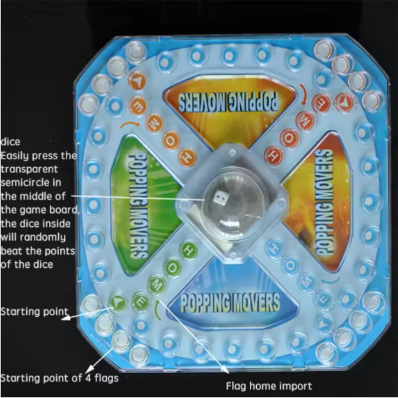 Flying chess is an interesting competitive game suitable for 2-4 people. Players roll dice to determine the number of moves, taking turns in a clockwise direction. Chess pieces start from the base, follow the arrow path around the board once and return to the end, the first to win. If a piece lands on the same color box, it can jump, and if it lands on an enemy piece, it can be returned to the base. Special grids (such as "Pause once" or "take two steps back") increase the game's variables. Simple rules, suitable for family entertainment, cultivate strategic thinking and parent-child interaction.