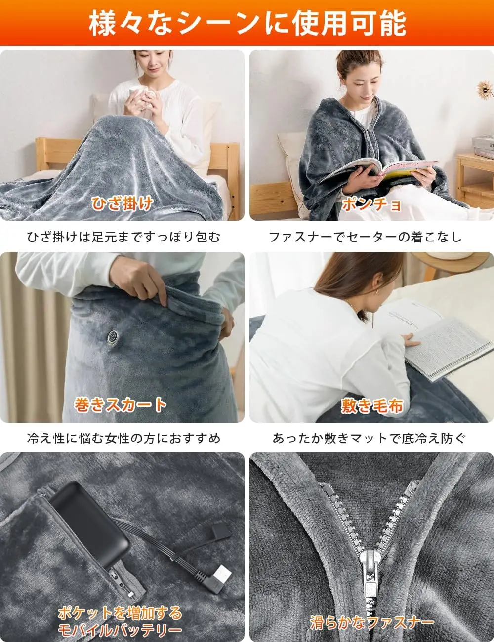 Electric Heating Body Warming Shawl Blanket Outdoor Camping Multifunctional Shawl Heating Blanket USB Charging Washable Leg Cove