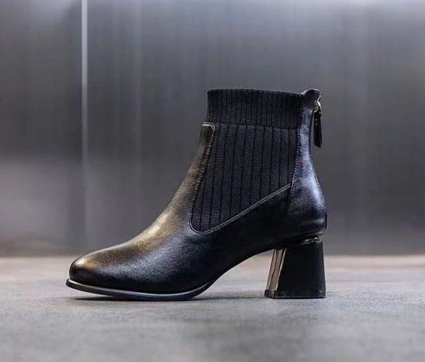 Elegant with Medium Heels Leather Women's Ankle Boots Autumn Winter Female Short Shoes Solid Color Booties Pu Boot on Promotion