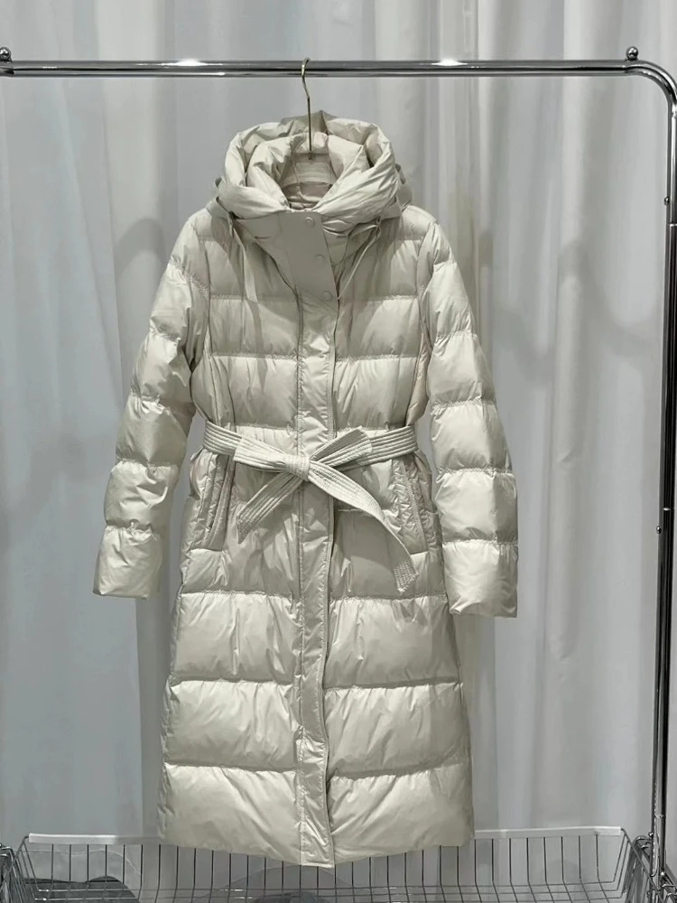 Fashionable Autumn Winter New 2025 Winter Women Thick White Duck Down Jacket Female Long Hooded Puffer Coat Ladies Outerwear