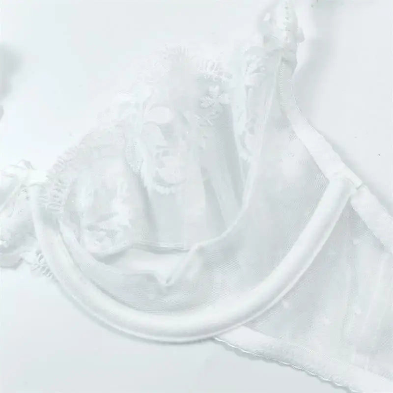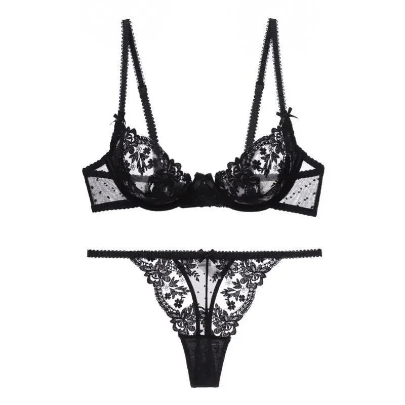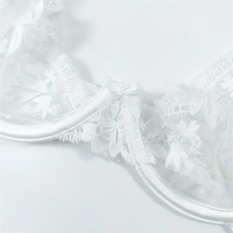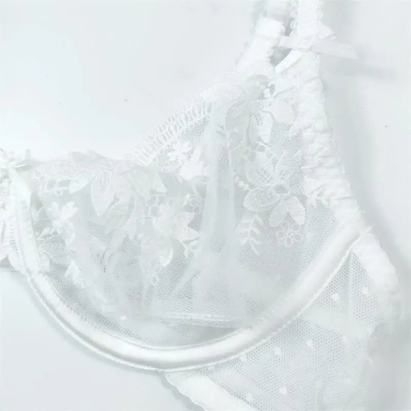 French Sexy Bra & Brief Set Lingerie Ultra-Thin See-Through Sexy Floral Lace Underwire Set Large Breasts Show Small Anti-Sag Bra