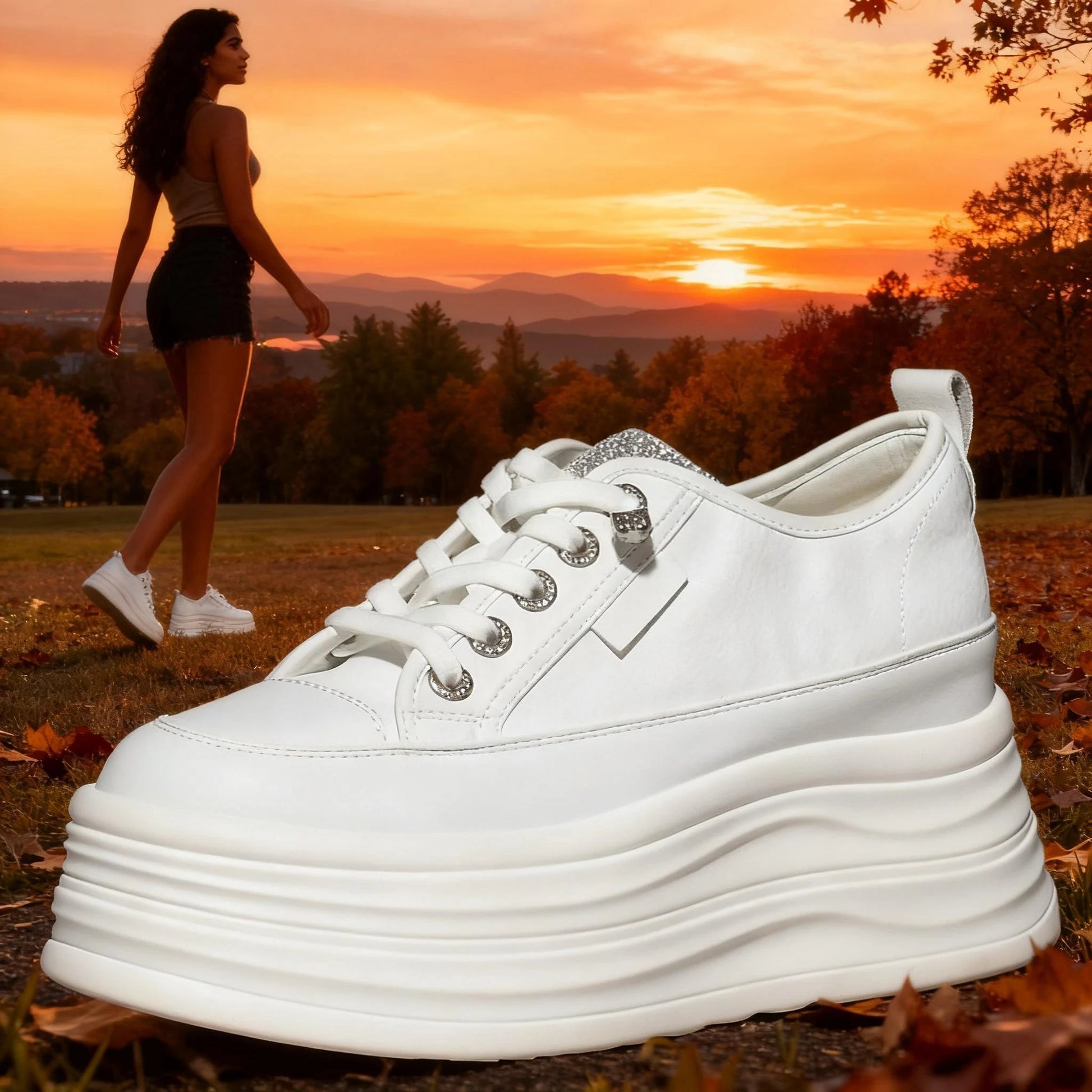 All-Day Comfort: Experience cloud-like support perfect for travel, walking, and exploring. The cushioned insole provides stability, making these platform sneakers ideal for pairing with dresses or jeans on long outings.