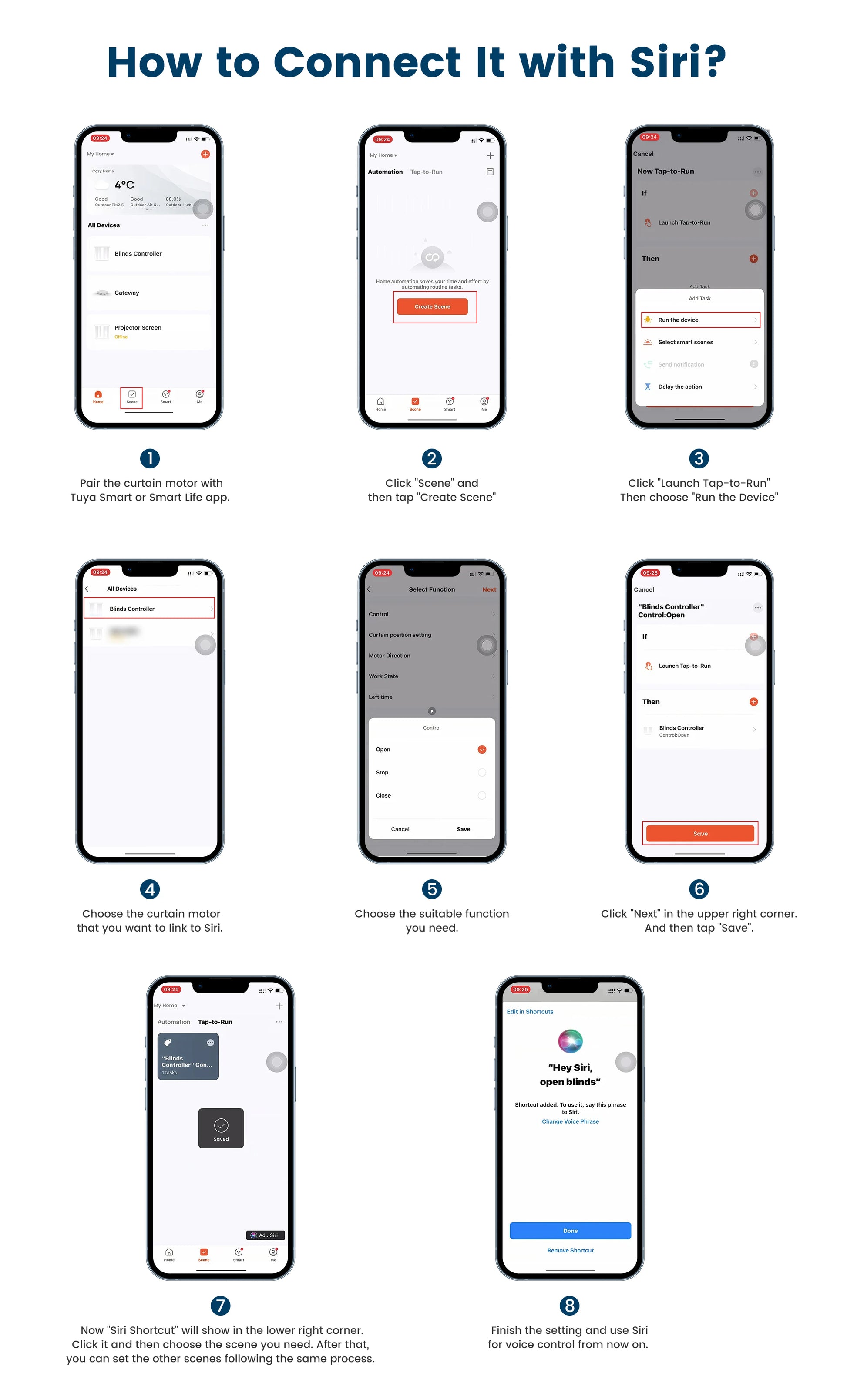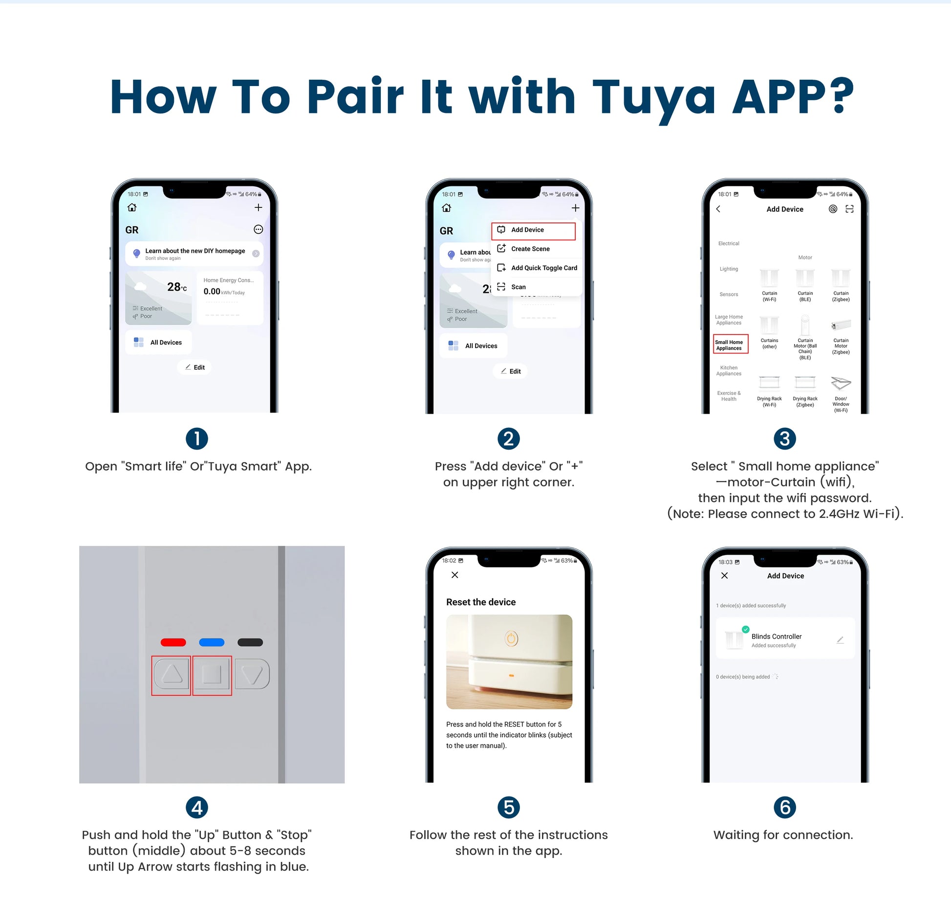 Pair the curtain motor with Tuya Smart or Smart Life app.Step 2