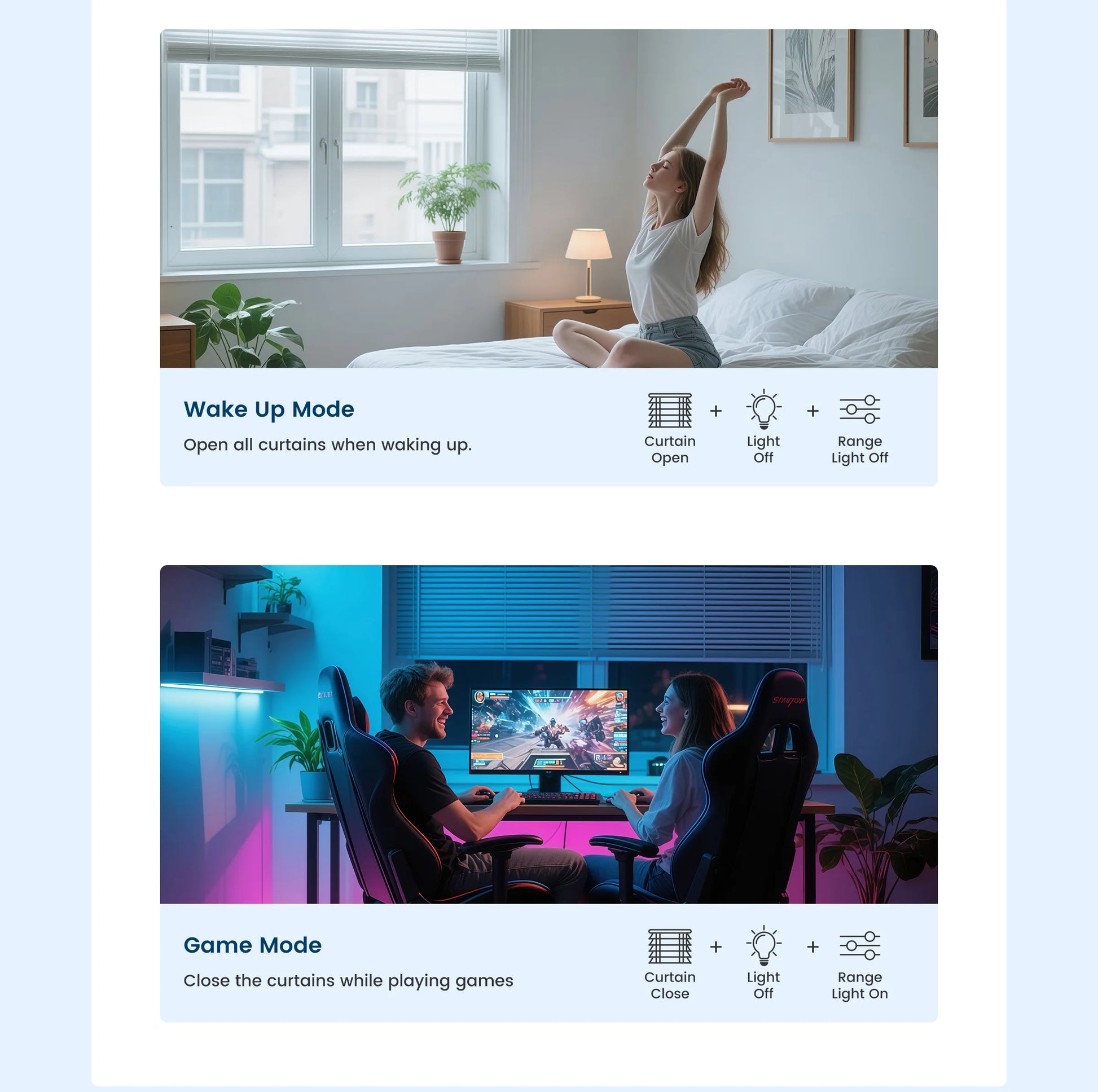 Enjoy unparalleled convenience by managing your blinds motor via the TuyaSmart or Smart Life app. Control your curtains from anywhere in the world with ease and flexibility, all through your smartphone.