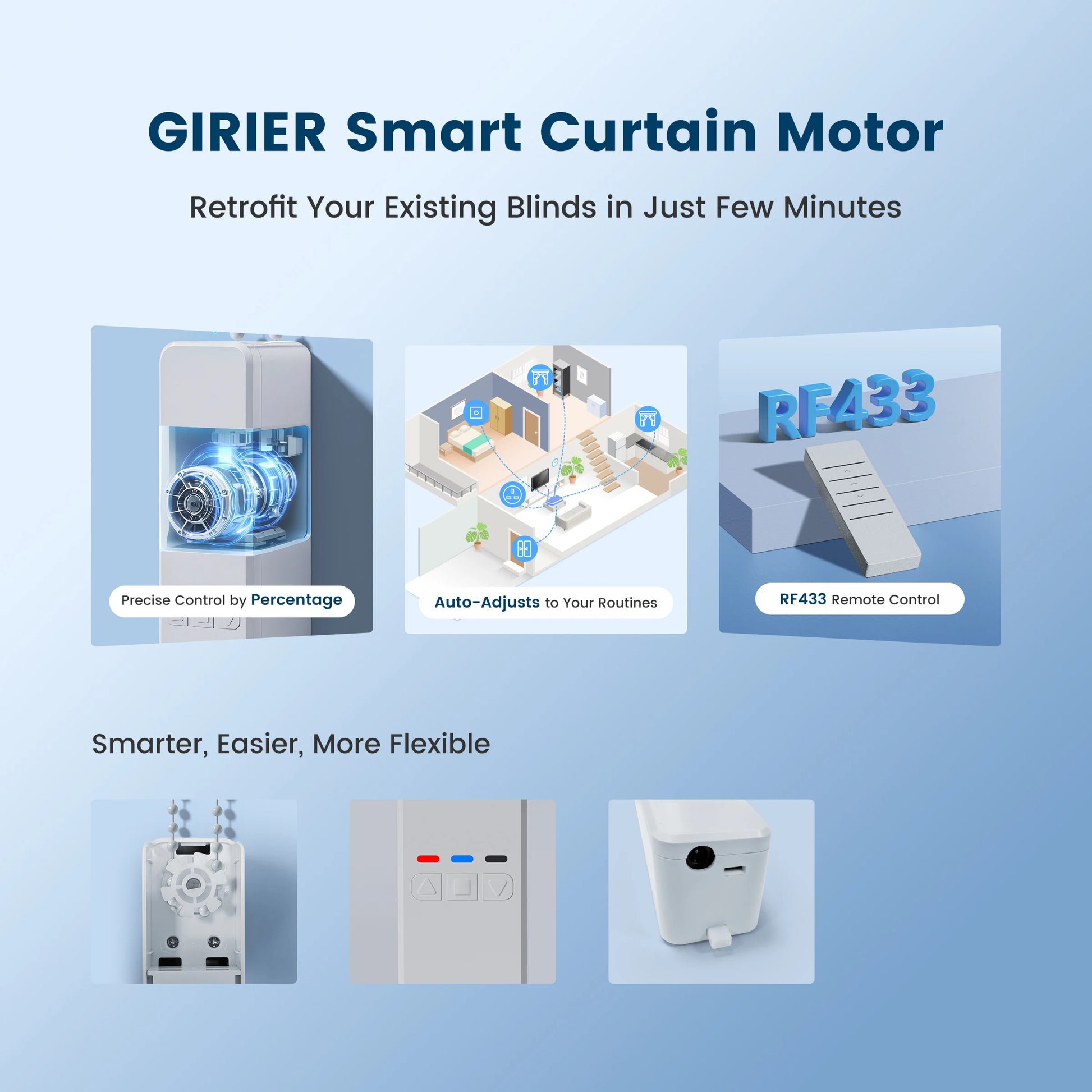 GIRIER Smart Curtain Motor WiFi Motorized Roller Shade Motor for Blinds Works with Alexa Google Home Assistant Supports Tuya APP