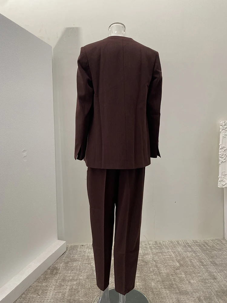 [LANMREM] Elegant 2 Piece Set Women's V Neck Cardigan Blazers High Waist Straight Slim Pants Fashion 2025 Spring New 26C1662
