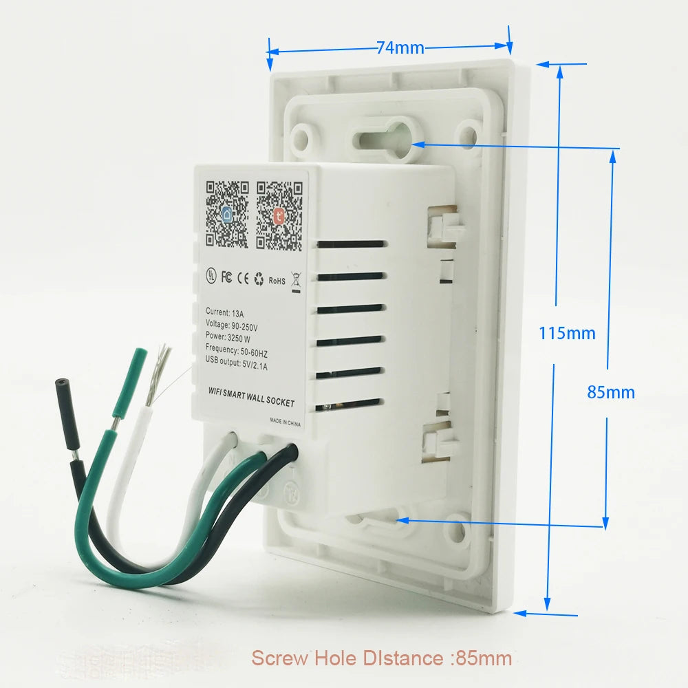 Smart wifi 2 Outlet In Wall Works With Alexa, Google Home Receptacle USB Charging Ports, Duplex Receptacle Socket,White