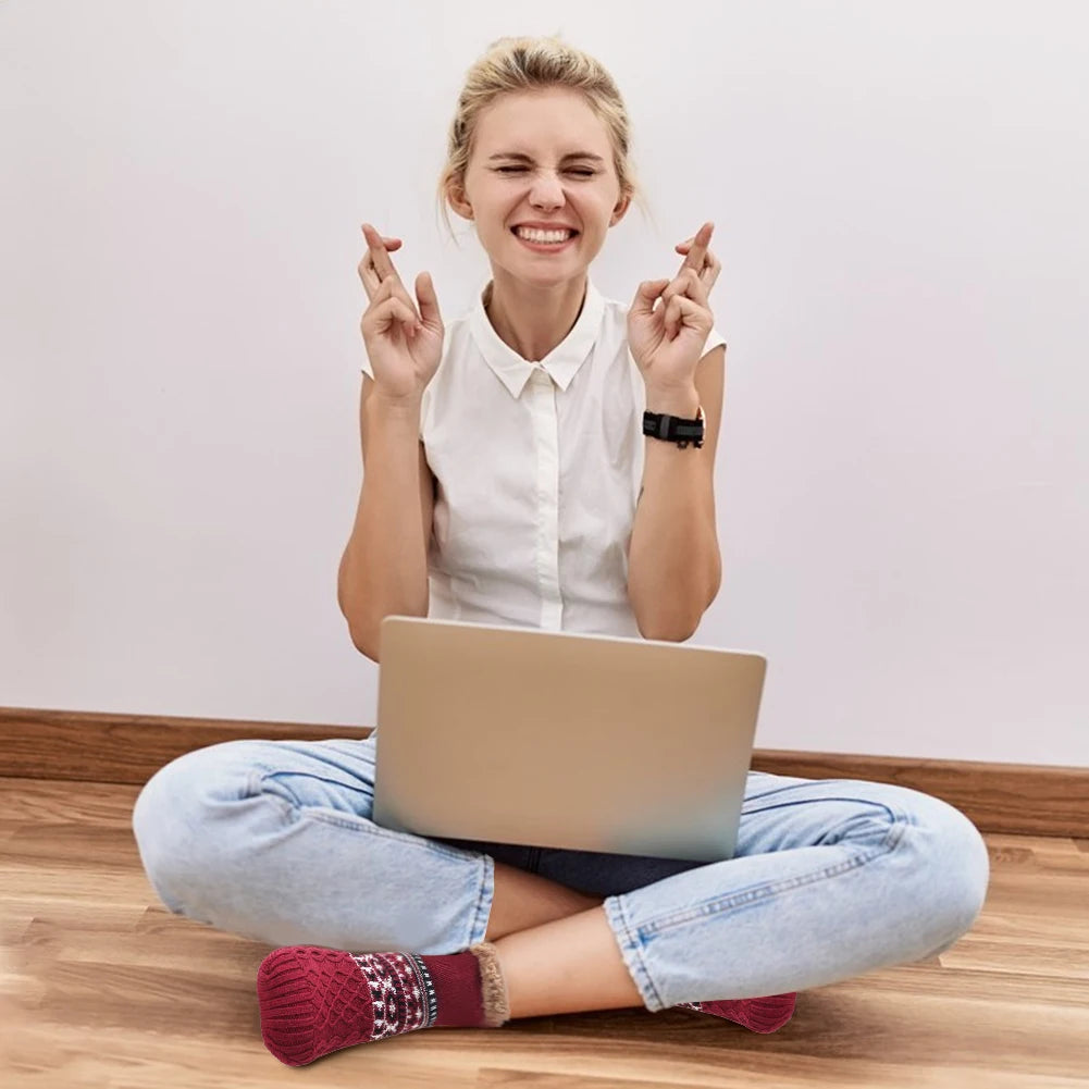 1.Warm and Comfortable: These winter indoor home slippers socks are crafted from high-quality knitted fabric and lined with ultra-soft wool, ensuring that your feet stay warm and cozy. The material is also highly breathable, preventing your feet from getting too hot or sweaty, making them perfect for all-day wear. 2.Ideal for Home: Designed specifically for indoor use, these fuzzy floor socks cover your ankles, providing extra warmth and comfort. They are perfect for lounging around the house, keeping your feet snug even in the coldest weather, and making them an essential item for winter. 3.Foot Relaxation: The soft and cushy texture of these thick thermal socks offers a luxurious feel, allowing your feet to relax and unwind. They help to alleviate foot pressure and provide a soothing sensation, making them an excellent choice for those who spend a lot of time on their feet. 4.Non-Slip Safety: Equipped with non-slip silicone grips on the soles, these carpet socks ensure you have a secure footing on various surfaces such as wooden, tile, and laminate floors. This feature enhances safety around the house, especially on slippery surfaces, reducing the risk of falls. 5.Easy to Wear: Featuring a stretchy low-cut cuff design, these bedroom sleeping socks are incredibly easy to put on and take off. The elastic cuffs provide a snug fit without being too tight, and they can be paired with regular socks for added warmth, making them versatile and convenient for everyday use.