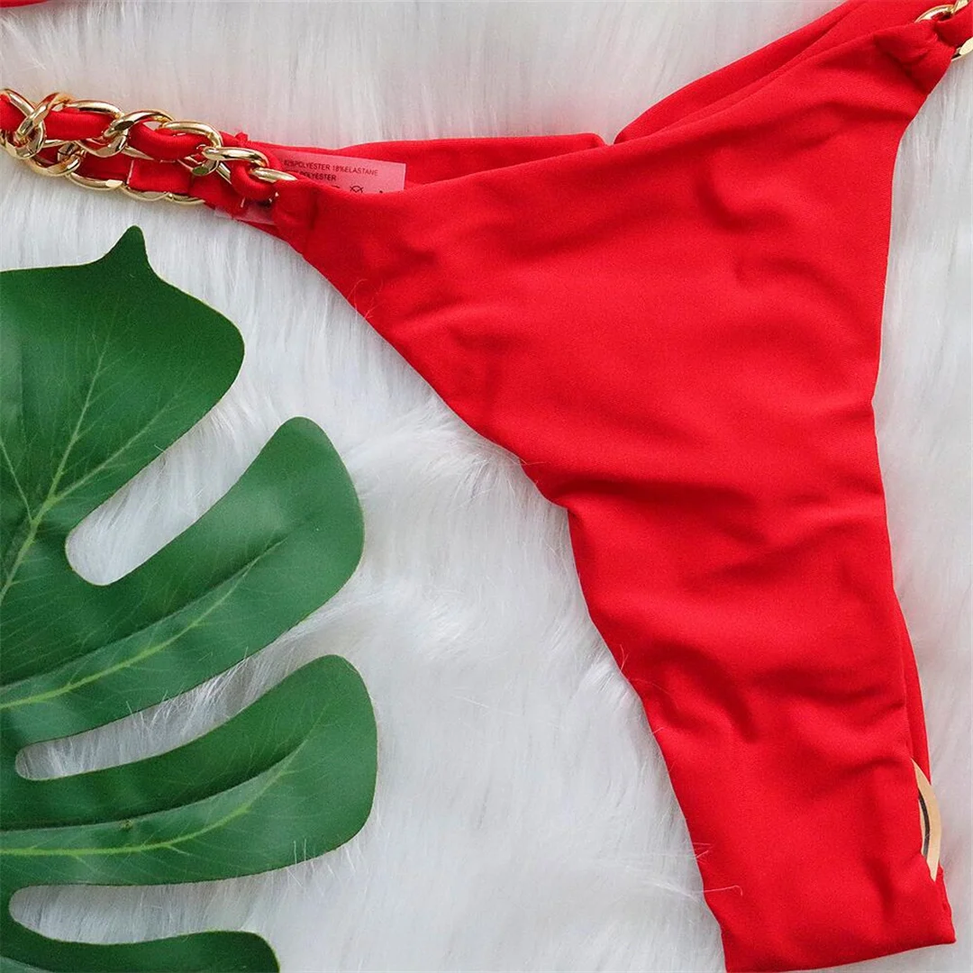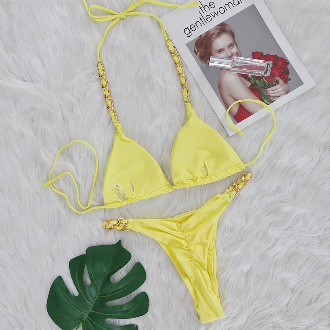 Metal Ring Halter Scrunch Butt Thong Bikini Women Swimwear Female Swimsuit Two-pieces Bikini set Bather Bathing Suit Swim V4391