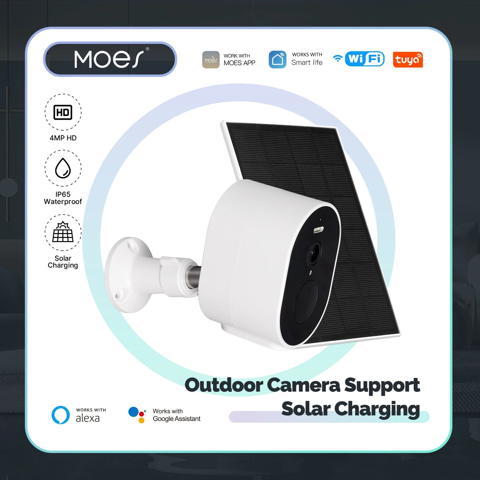 MOES Tuya WiFi 4MP HD Smart Security Camera Solar Charging IP65 Waterproof Full Color Night Vision Work With Alexa Google Home