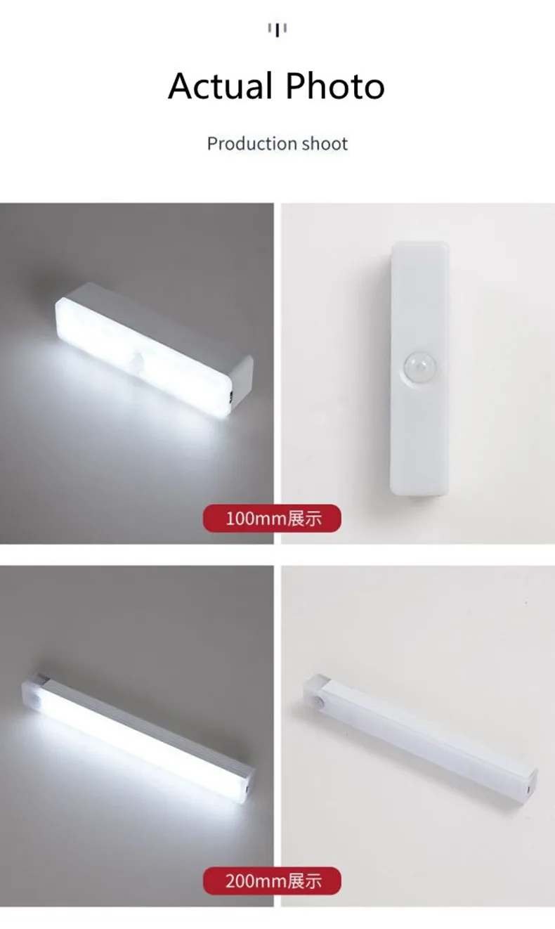 PIR Motion Sensor LED Cabinet Light USB Rechargeable Induction Night Light Wireless Portable Detector Lamp for Wardrobe Hallway Kitchen