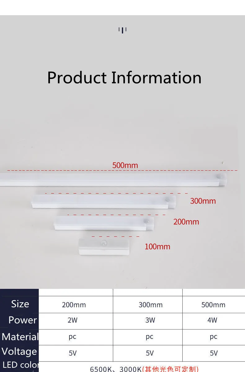 Motion Sensor led Light Wireless LED Night Light Type C Rechargeable Light Cabinet Wardrobe Lamp Staircase Backlight For Kitchen