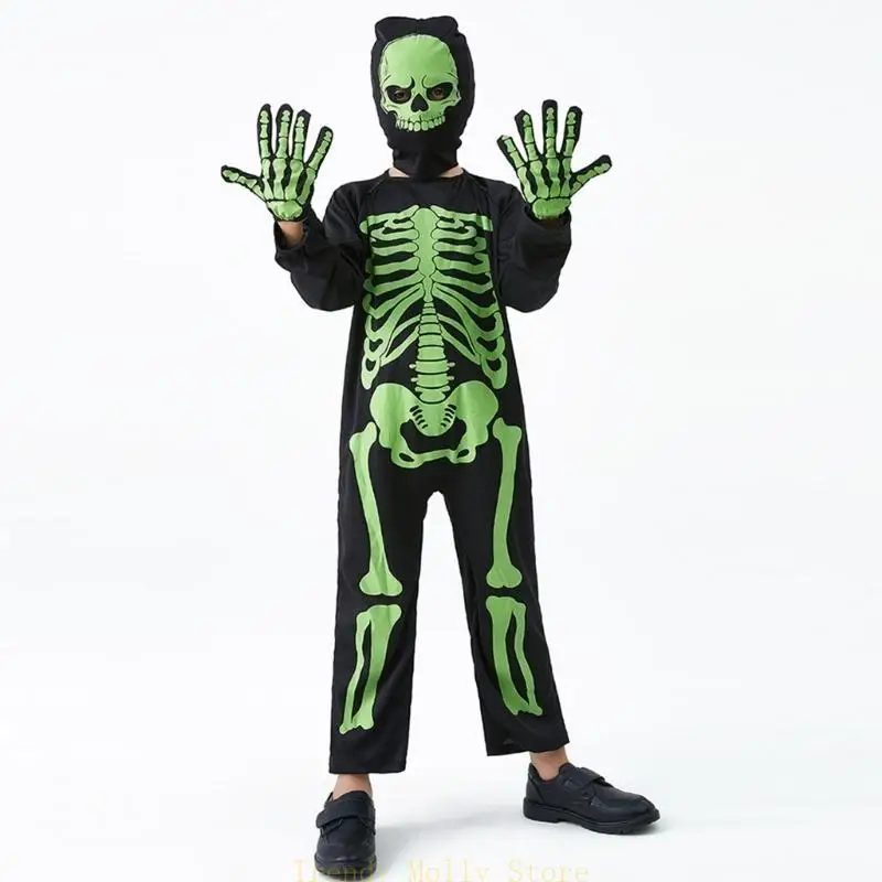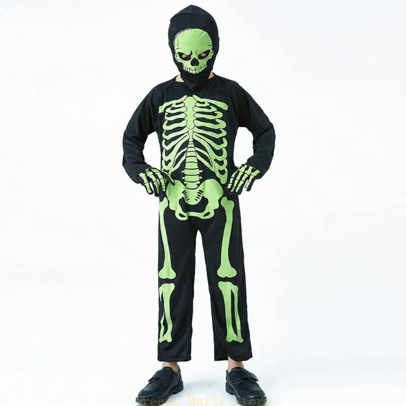 Package Includes:Costume set includes child unisex skeleton jumpsuit party horror dress up costume, and with 3D molded bone markings.
