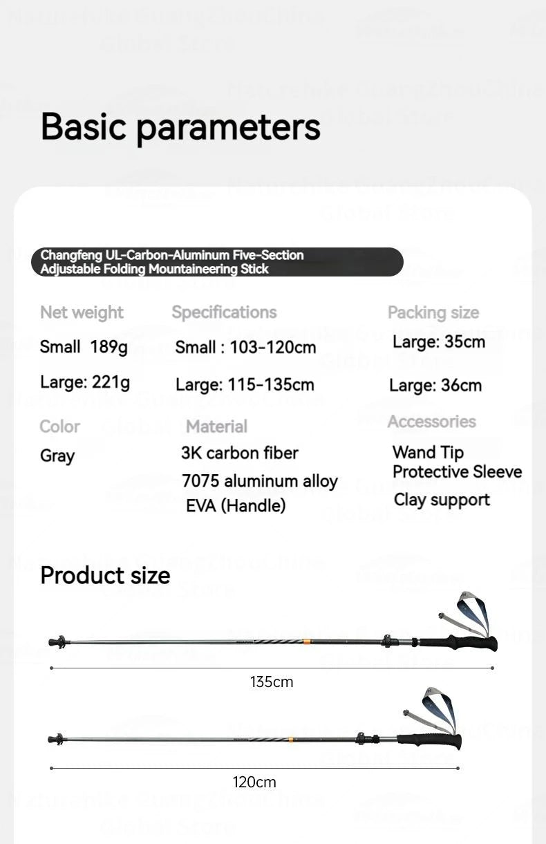 Naturehike 5-Section Walking Stick Pole Carbon Fiber Aluminum Alloy Folding Teleskopic Ultralight Trekking Hiking Canes UL Pro