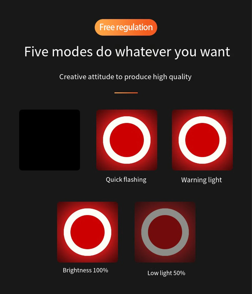 • Multi-Lighting Modes :The bicycle taillight offers multiple lighting modes, allowing you to choose the best option for your cycling needs.