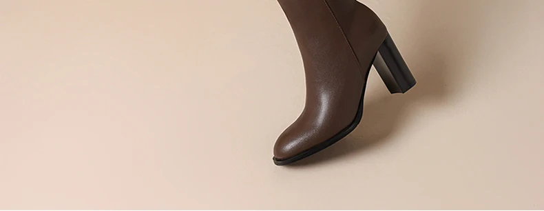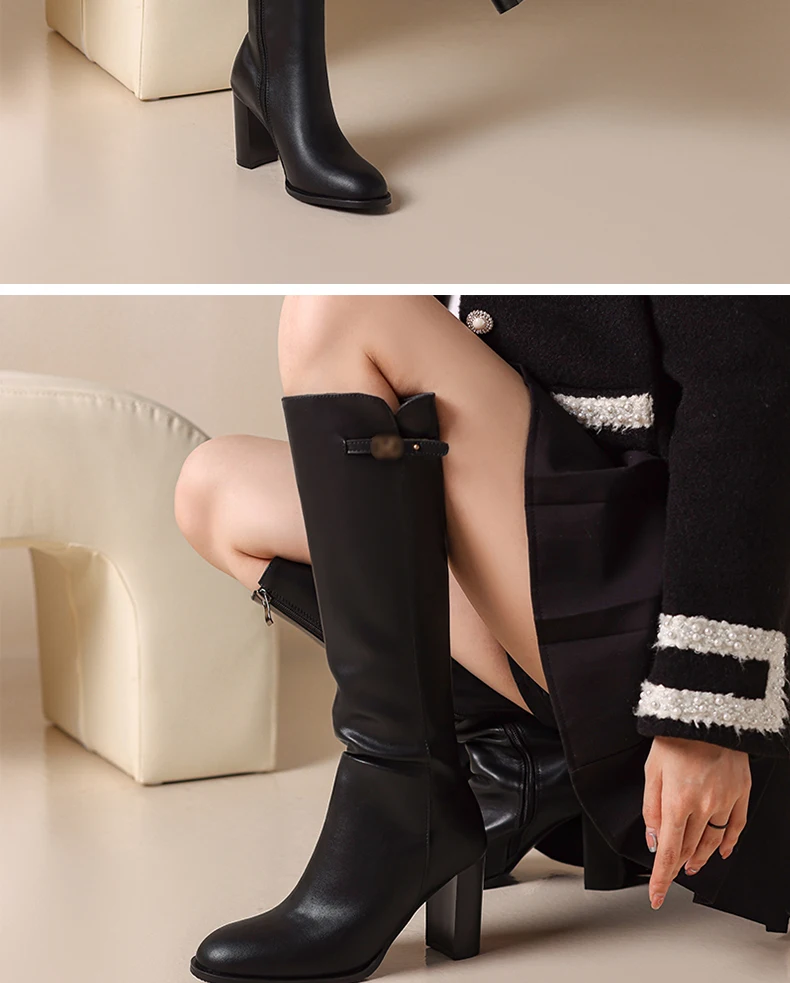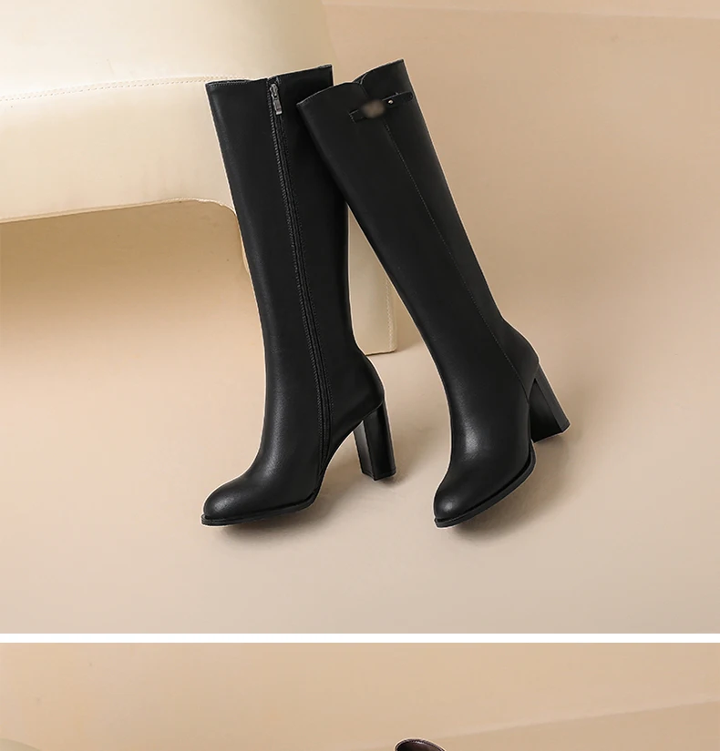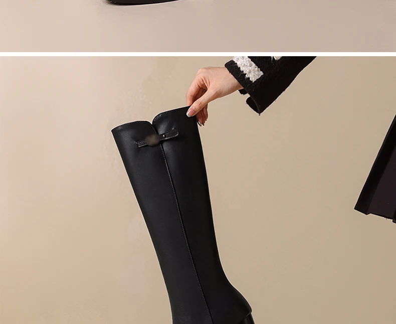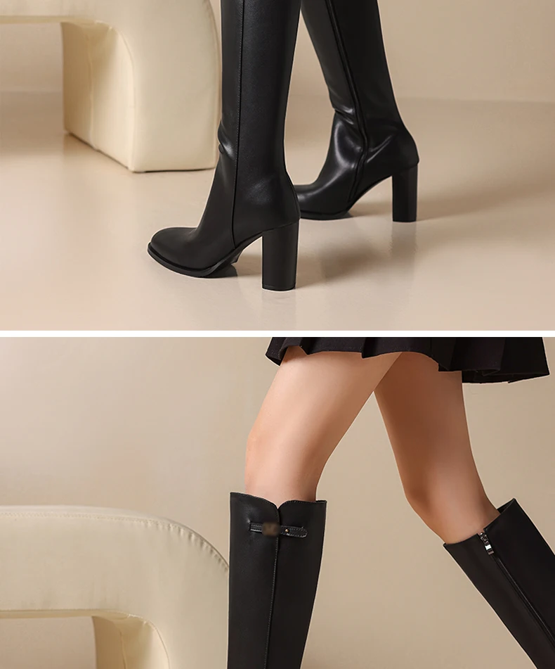 Ods Soft Cow Leather Black Knee High Boots Chunky Mid Heels Zipper Women's Long Boot Big Size Luxury Designer Sexy Shoes 4143 46