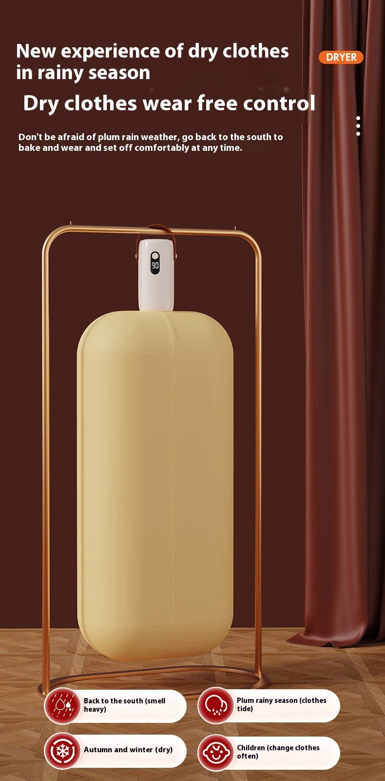 • Intelligent PTC Heating : Equipped with intelligent PTC heating technology, this dryer ensures quick and efficient drying of clothes.