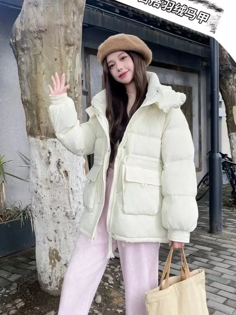 Puffer Jacket Women Warm Fashion Korean Mid-length Duck Down Coat Female 2024 New Winter White Duck Down Jacket Women
