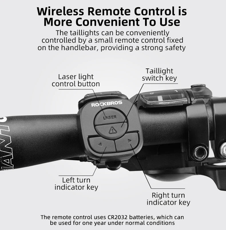 ROCKBROS Bike Tail Light USB Rechargeable Wireless Waterproof MTB Safety Intelligent Remote Control Turn Sign Bicycle Light Lamp