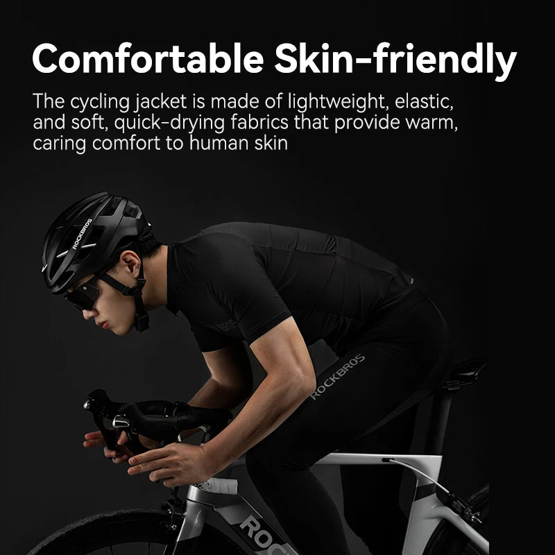 The cycling jacket is made of lightweight, elastic, and soft, quick-drying fabrics that provide warm, caring comfort to human skin.