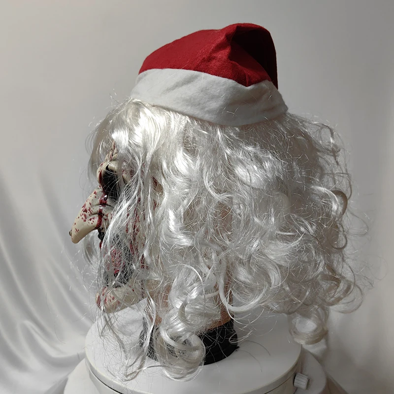 Scary Terrifier 3 Cosplay Mask Latex with Christmas Hat White Hair Soft Joker Terrifier Masks Clown Party Masks Adult One Size