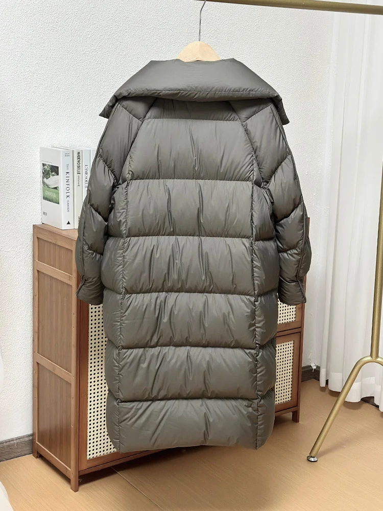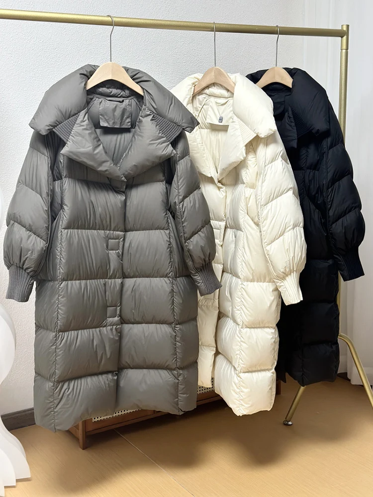 Schinteon Women White Duck Down Long Jacket Autumn Winter Warm Casual Over Size Loose Outwear Soft Comfortable Fashion Coat New