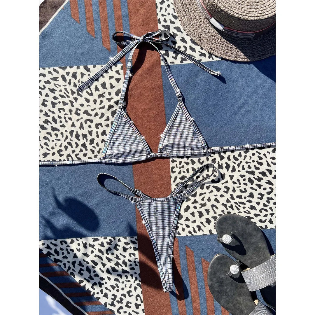 Silver Sequin Extreme Mini Micro Thong Bikini Female Swimsuit Women Swimwear Two-piece Bikini set Bather Bathing Suit Swim V4394