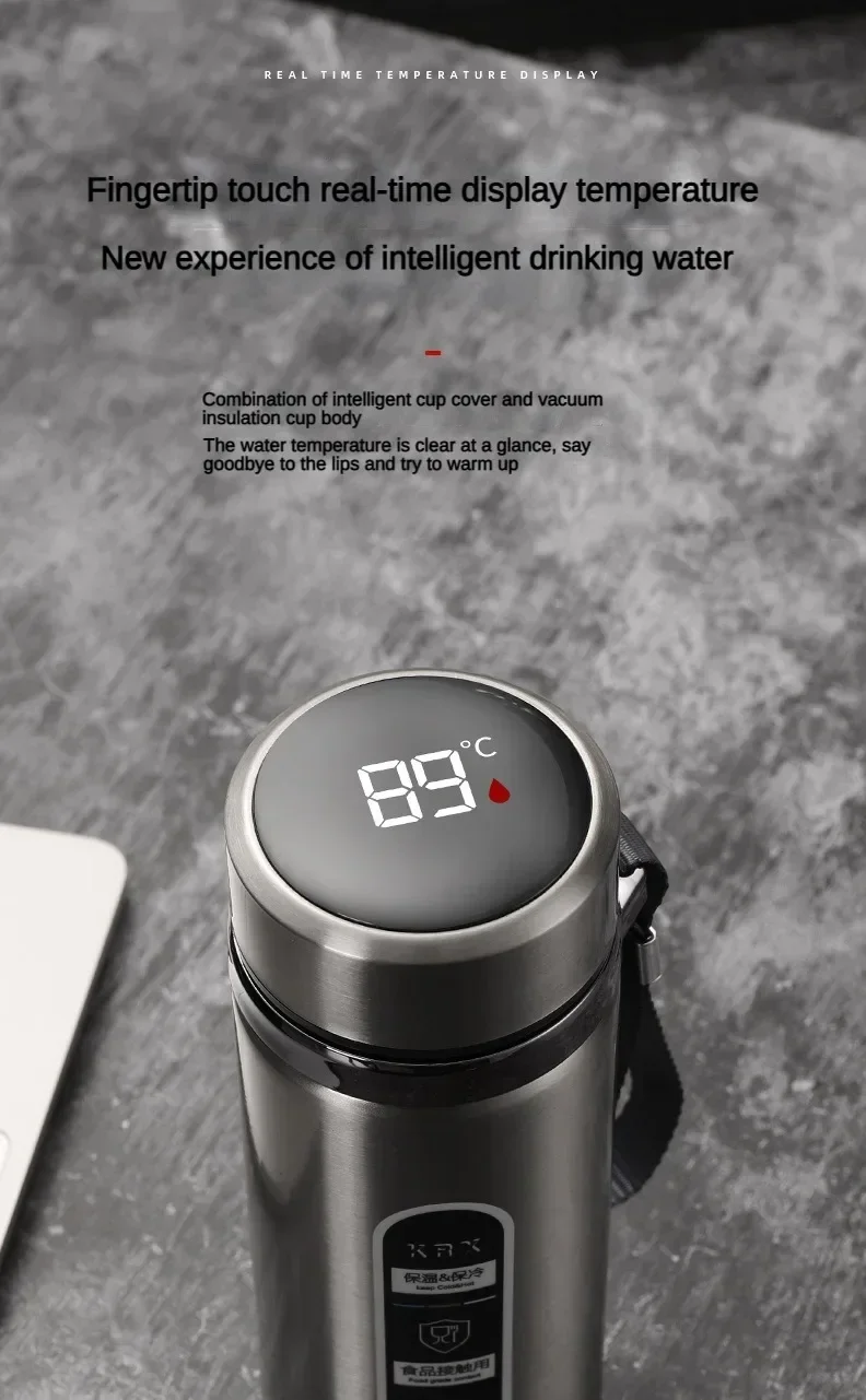 8Stainless Steel Thermos Bottle with LED Temperature Display, 500-1000ML