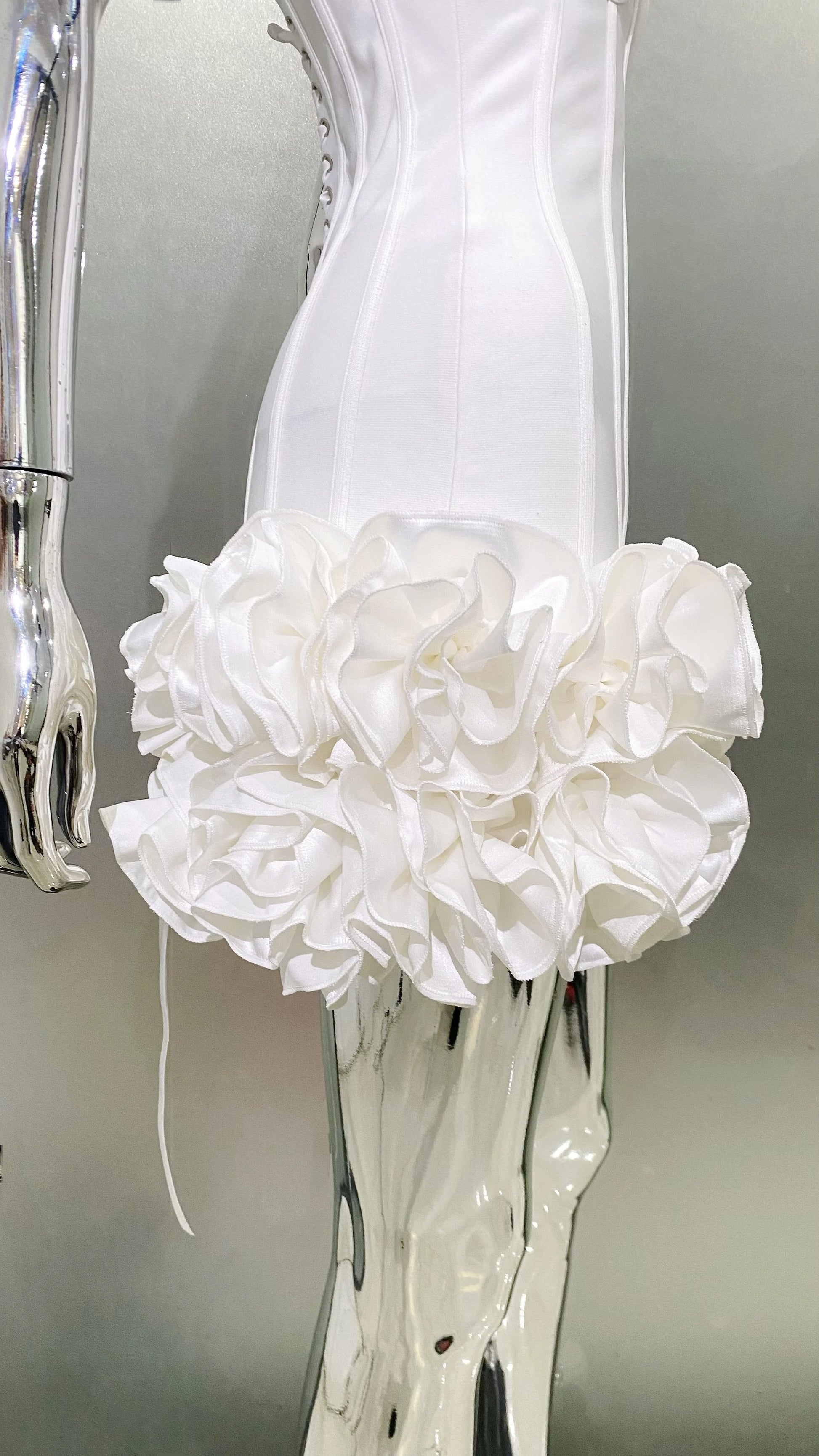 Stereoscopic Flowers Back Laceing Strapless Red Bandage Mini Evening Dress Sweet Woman Birthday Party Dress Performance costume